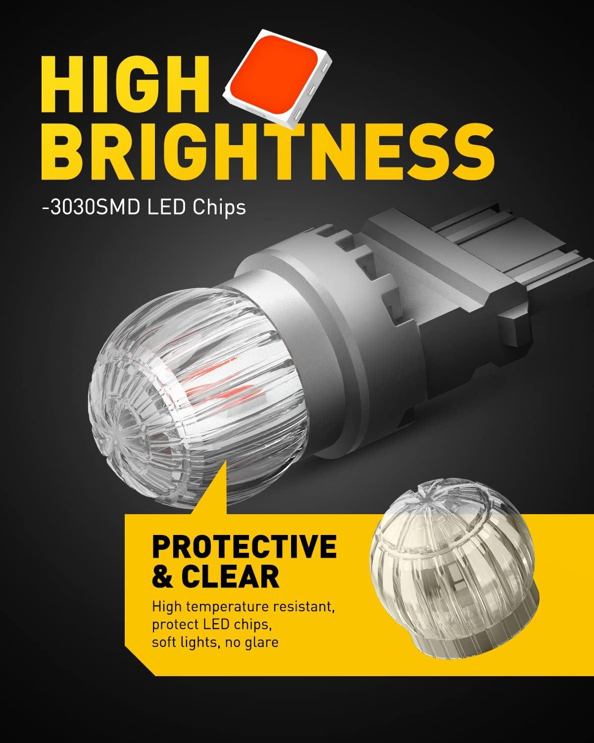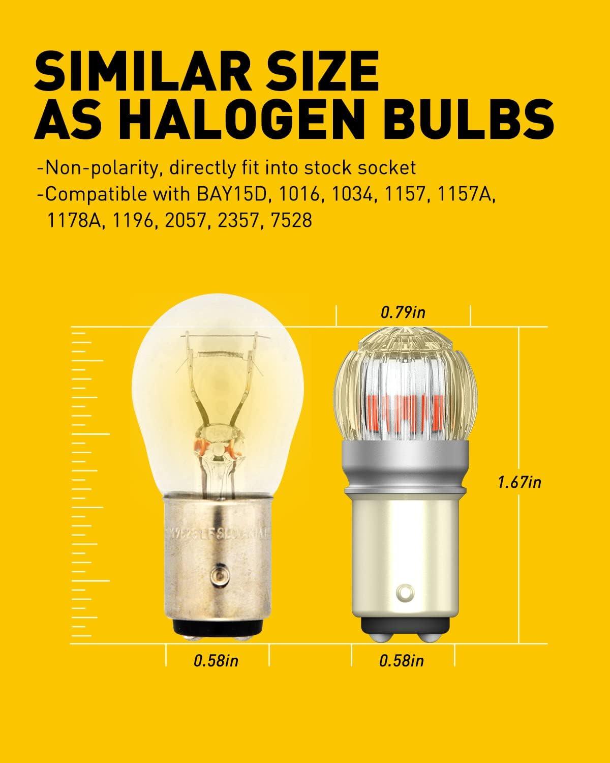 【Ultra Bright & Safer Upgrade】 AUXITO 1156 led brake light utilize newest powerful and high quality 3030SMD led chips. Generating 400% brighter output and larger lighting area than halogens, more noticeable when ready to braking. Keep safe
