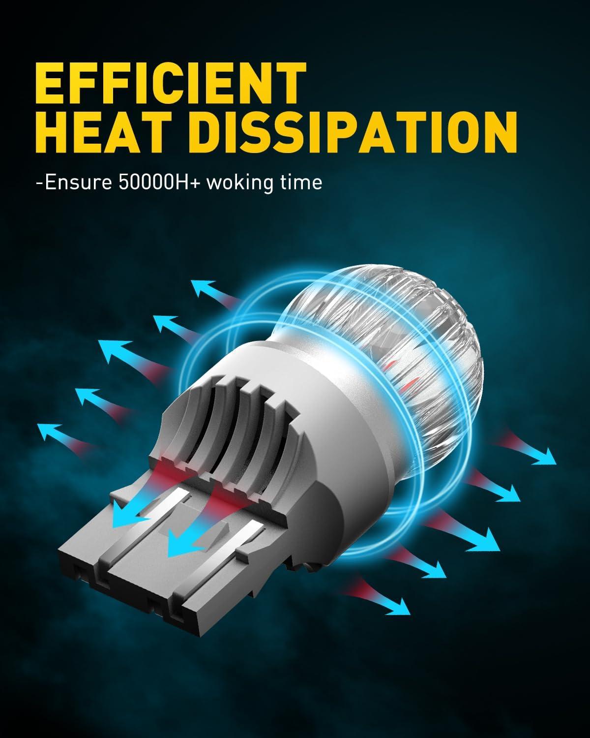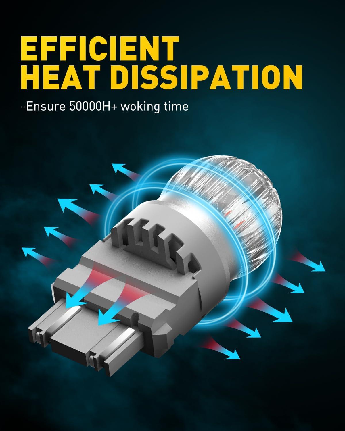【Stable Use & Longer Lifespan】 Hidden hollow-carved and aviation grade aluminum body, expediting the heat dissipation of the led red 1156. With special PC lampshade protecting led chips and components, those 7506 red leds can work up to 30,000 hours