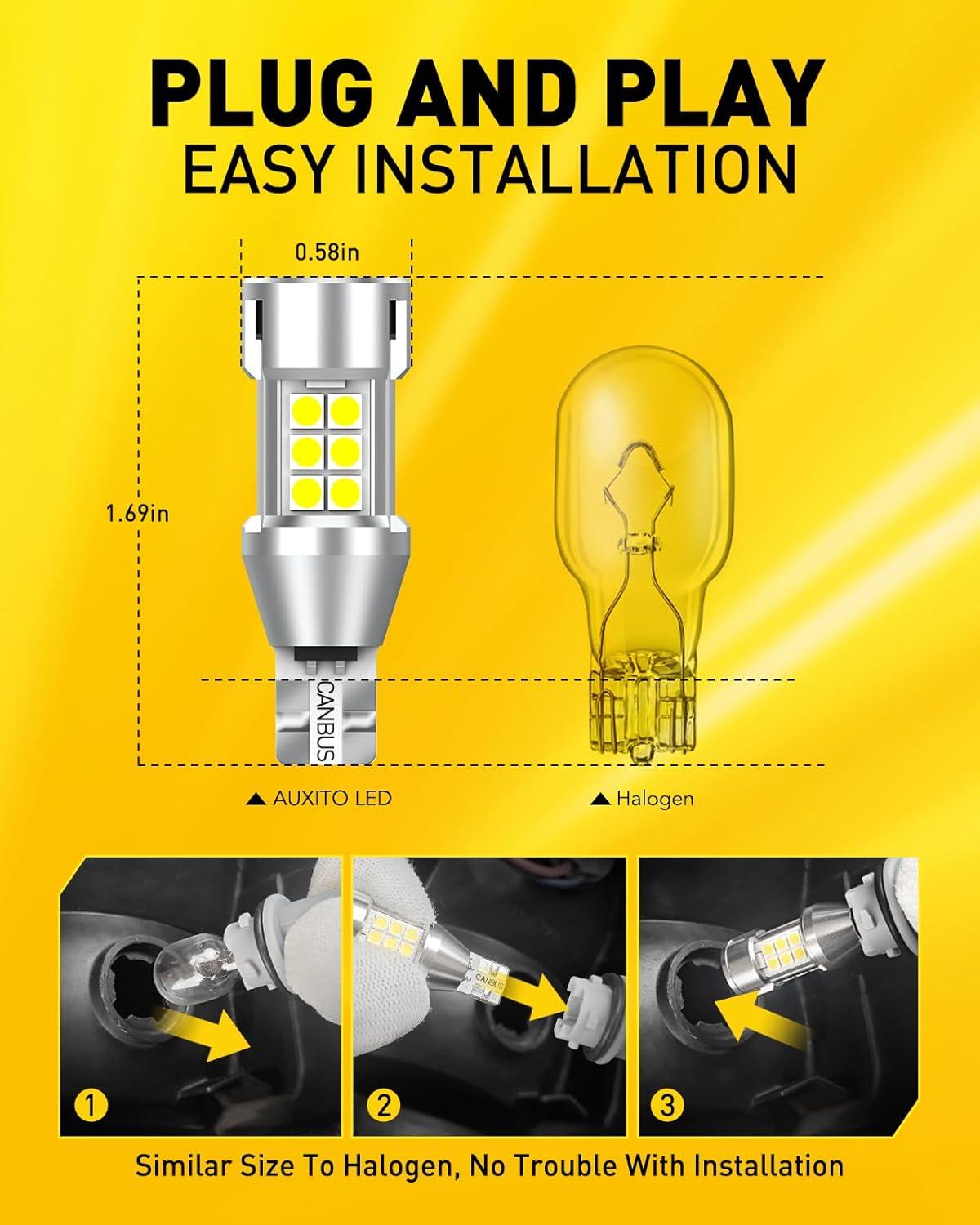 Wide Application: AUXITO 168 led bulbs can be used for license plate tag light, map lights, dome light, front/rear side marker lights, trunk cargo room lights, turn signal lights, reading lights, glove box lights, inner tail light bulb, etc