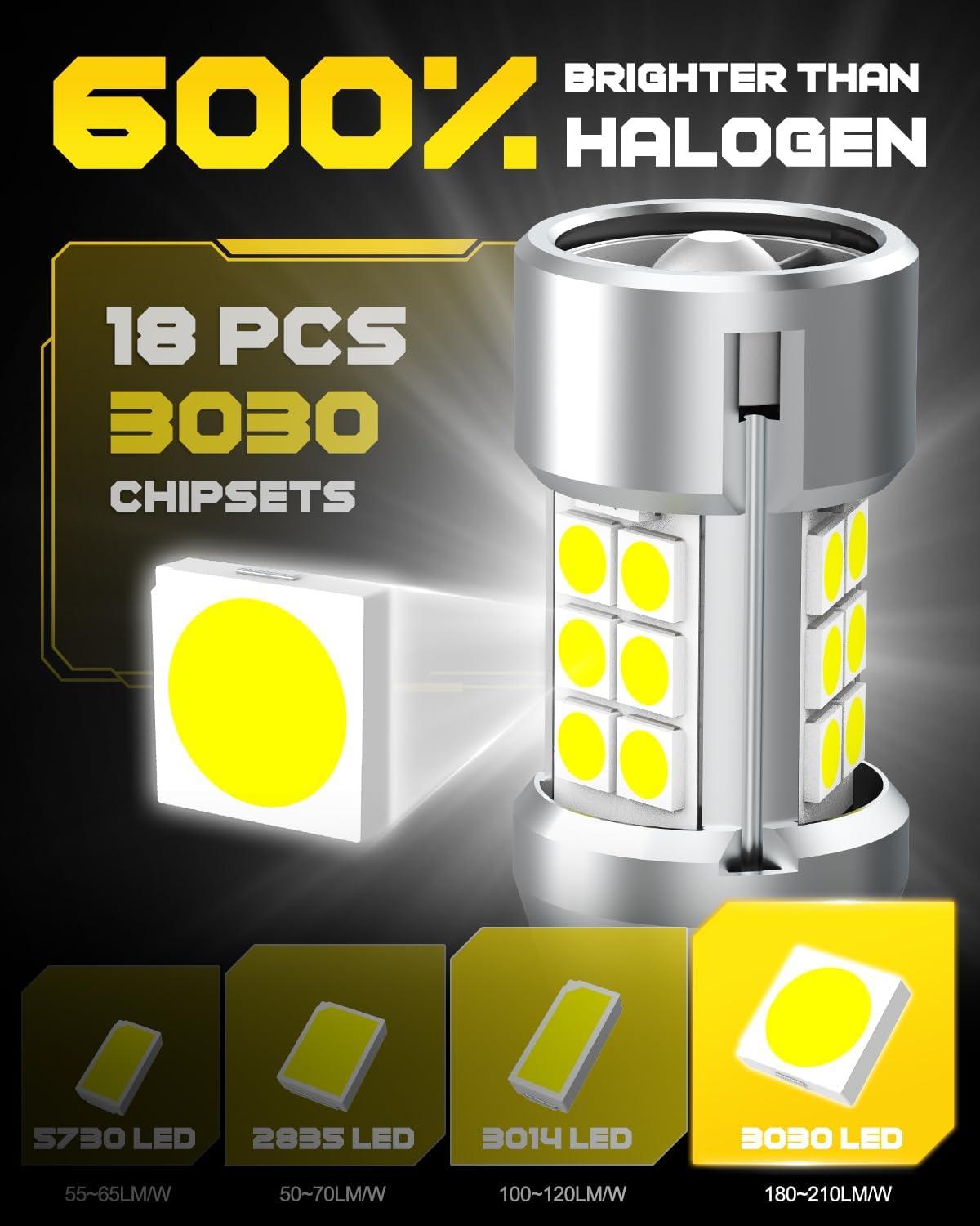 600% Brighter than Halogen: AUXITO 7443 LED bulb amber is built with newest high brightness LED chips, generating 4000lm super bright output per pair, which can help others notice your vehicle faster and clearer even in the bad weather.