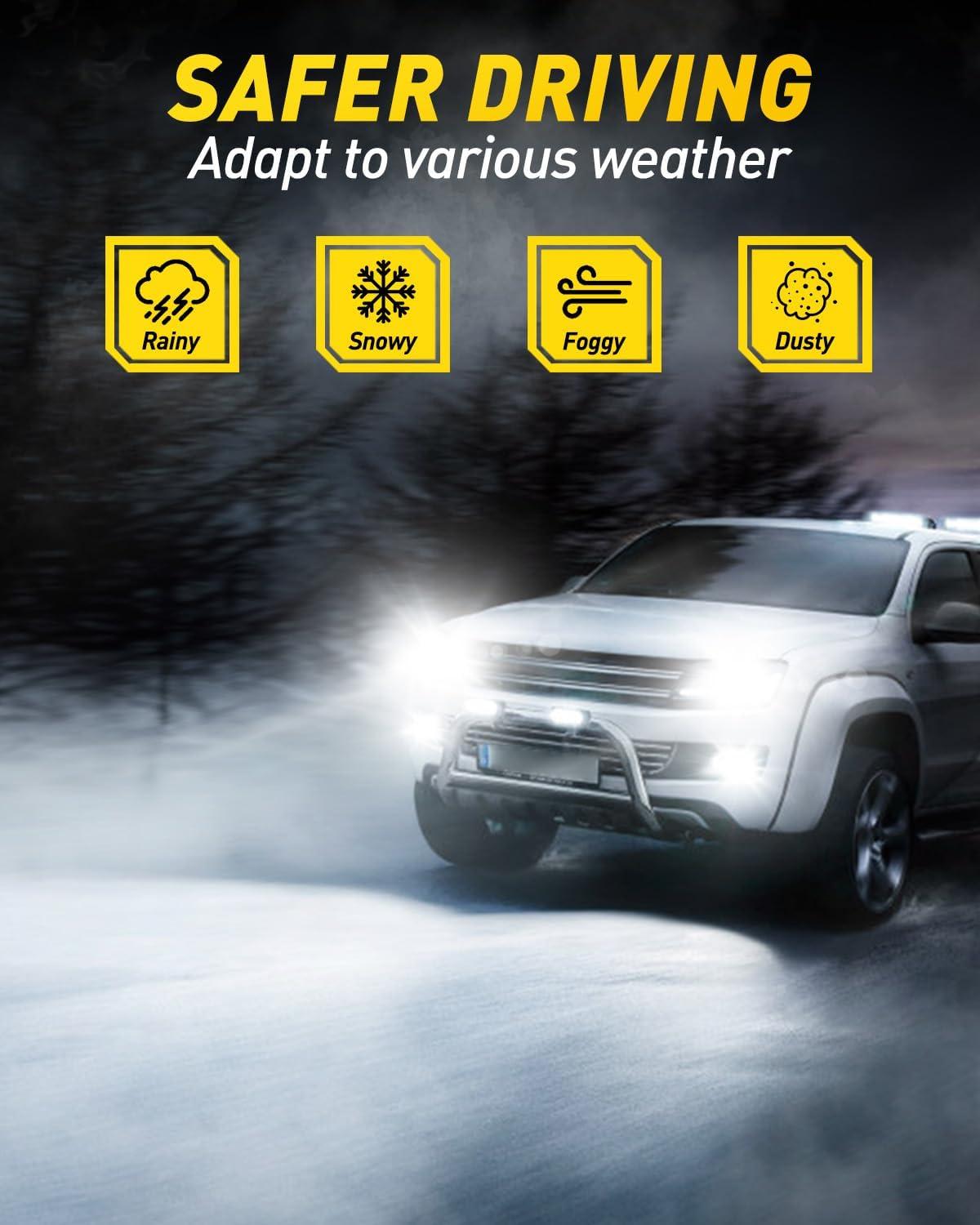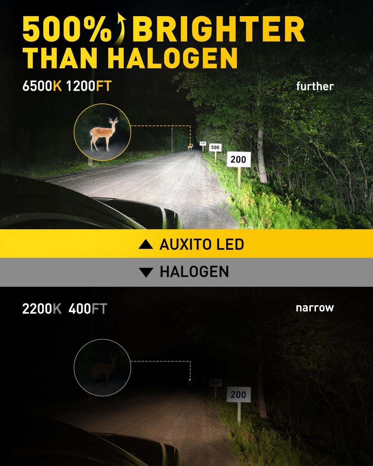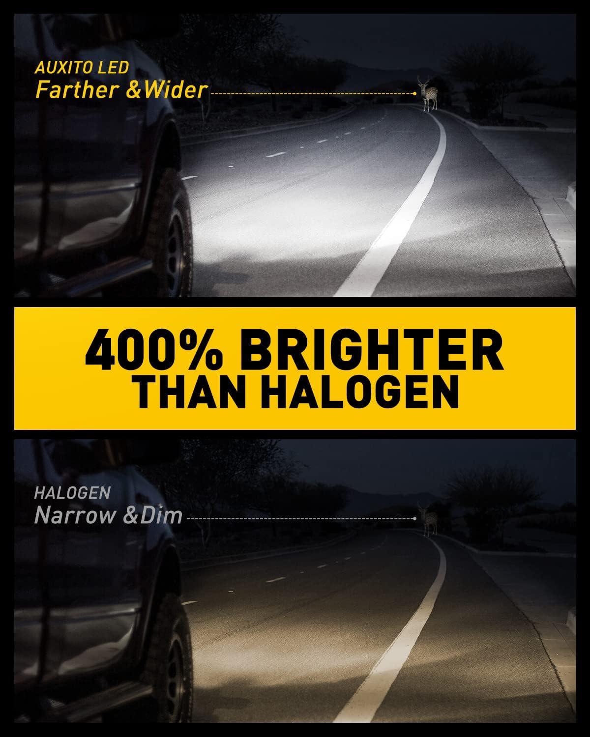 【500% Brightness Improved】Engineered with latest chips and emitting a 6500K white light, the AUXITO H7 bulbs are 500% brighter than halogen H7 light bulbs. This significant increase in brightness ensures clearer and longer-range visibility on the road, improving nighttime driving visibility