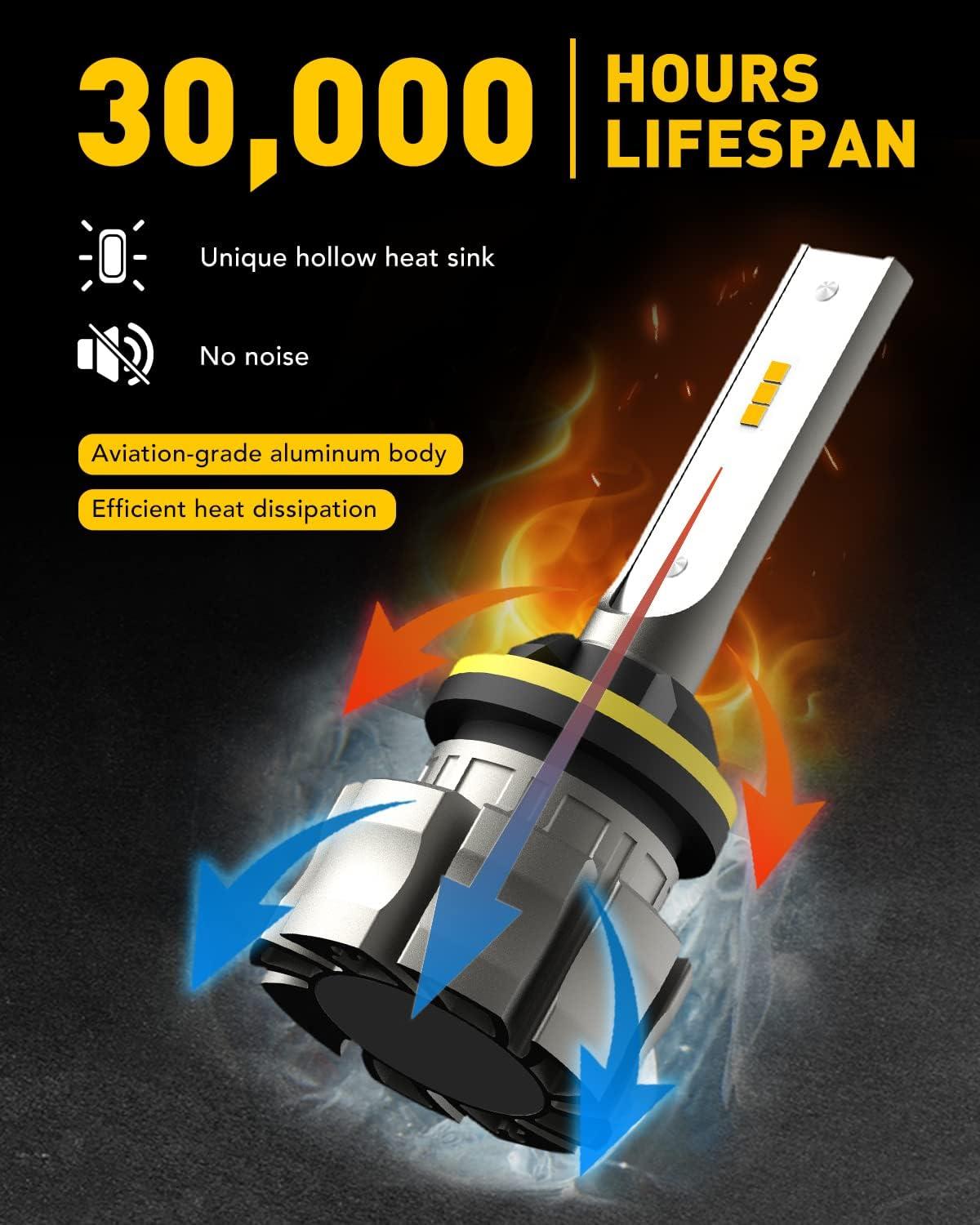 300% Brightness: AUXITO 880 Led Fog Light Bulb uses double sided CSP LED chips, provides excellent 360°illumination. 6500K cool white light, 6000 lm per set, 300% brighter than halogen bulbs. Bright and clear vision makes driving safer.