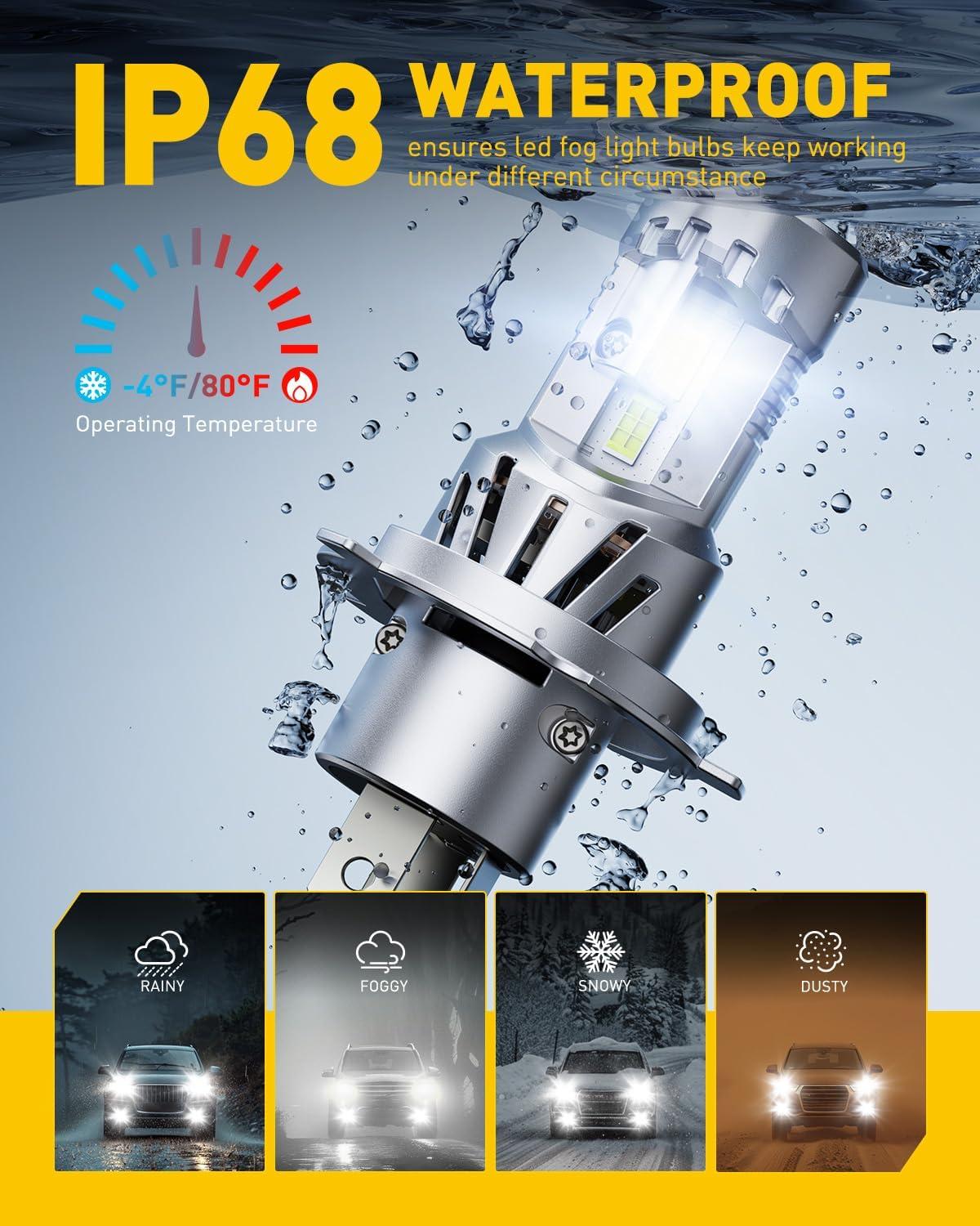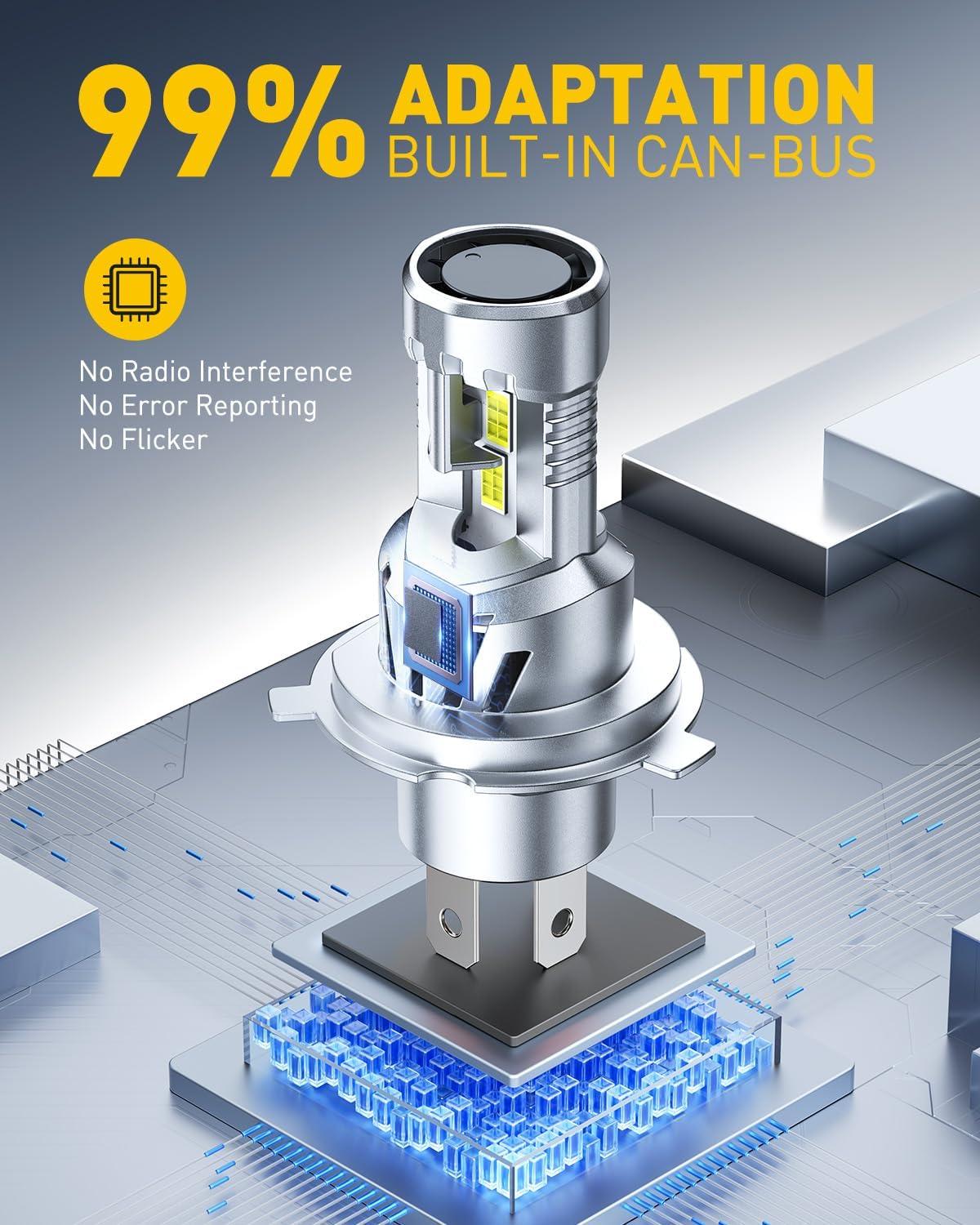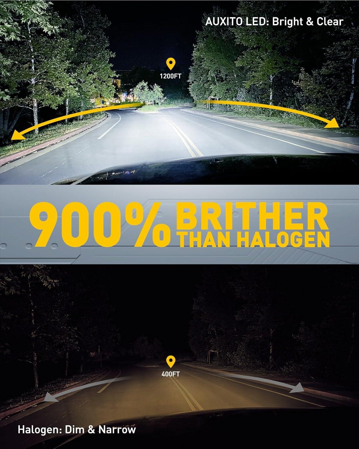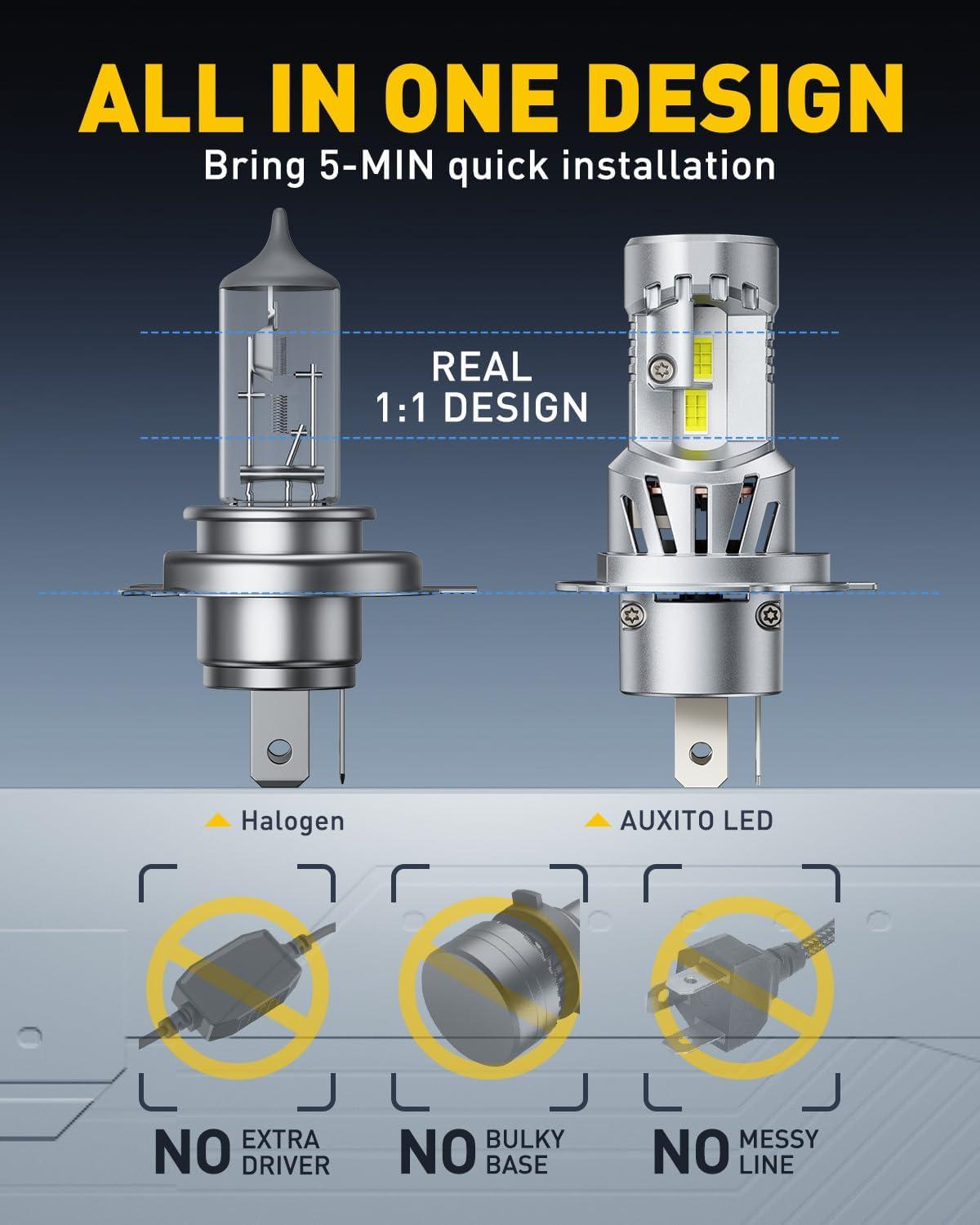 Outstanding Brightness: Equipped with 24 advanced LED chips, the Auxito H4 LED bulbs provide 9 times the brightness of your factory lights. Experience clearer and longer-range illumination, ensuring that you see the road ahead with clarity