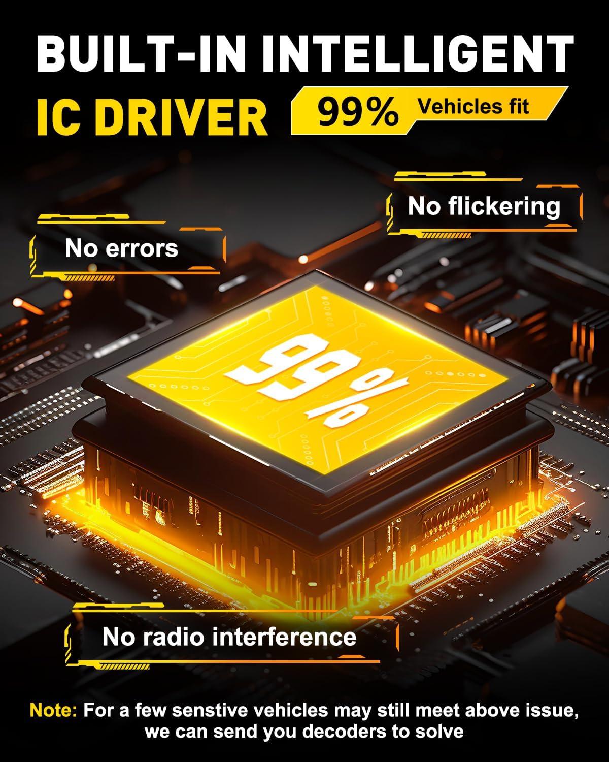 99% Compatibility: Featuring a built-in intelligent IC driver, AUXITO 9003 light bulbs are compatible with approximately 99% of vehicles, ensuring a seamless installation with no flicker or error