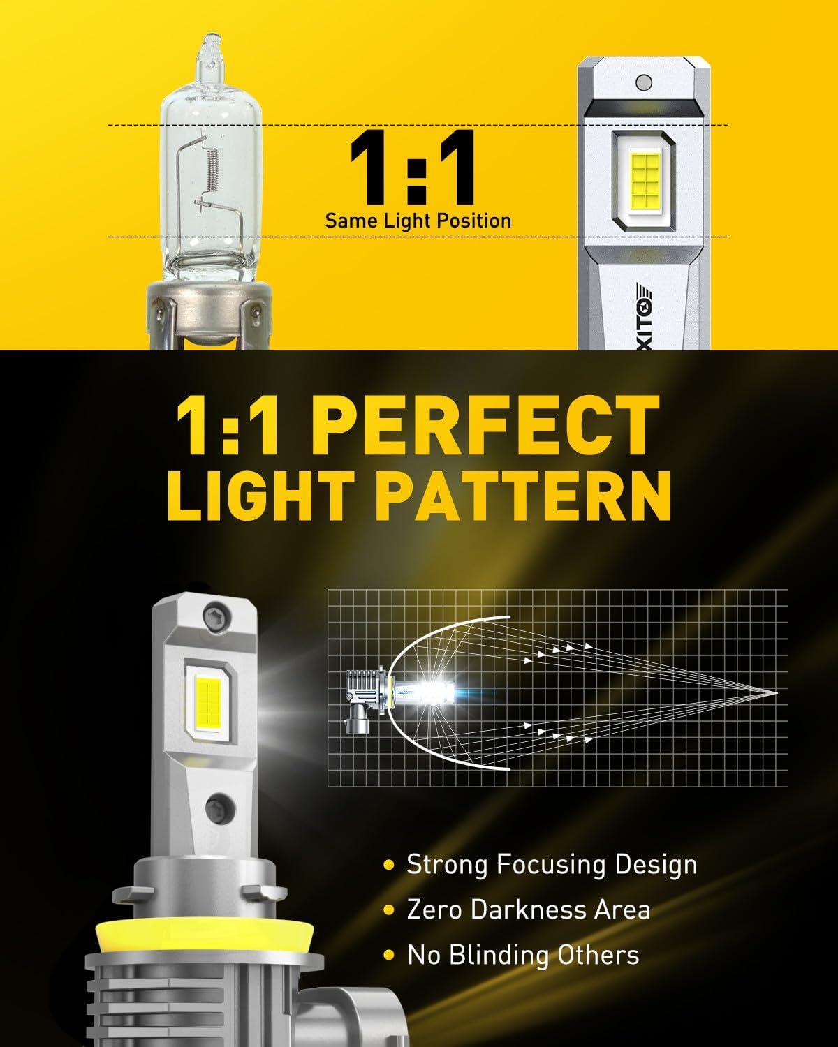 【900% Brightness Improved】Engineered with 8 latest CSP chips and emitting a 6500K white light, the AUXITO H4 led bulbs are 900% brighter than halogen 9003 light bulbs. This significant increase in brightness ensures clearer and longer-range visibility on the road, improving the nighttime driving visibility