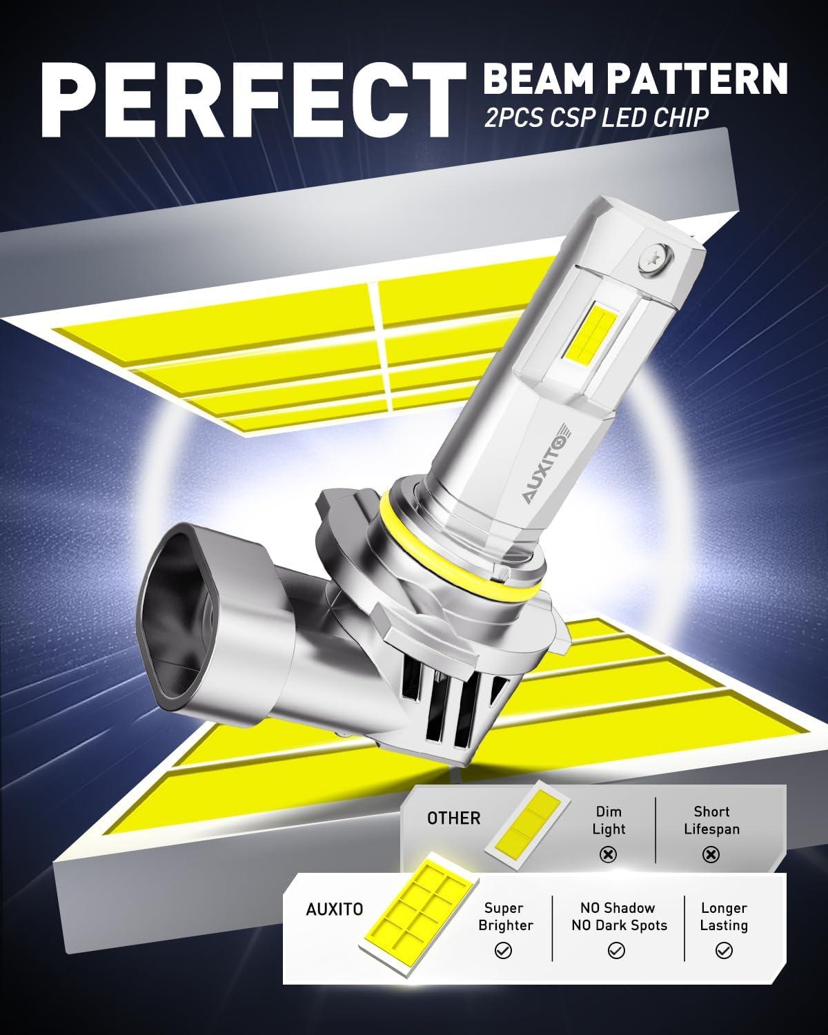 [900% Ultra-Focused Brightness]: Experience a dramatic upgrade with AUXITO 9005 9006 led light bulbs combo , delivering a brighter, whiter beam than standard halogens. The advanced LED chips produce focused light output for enhanced road illumination, increasing safety and reducing eye strain during night drives.