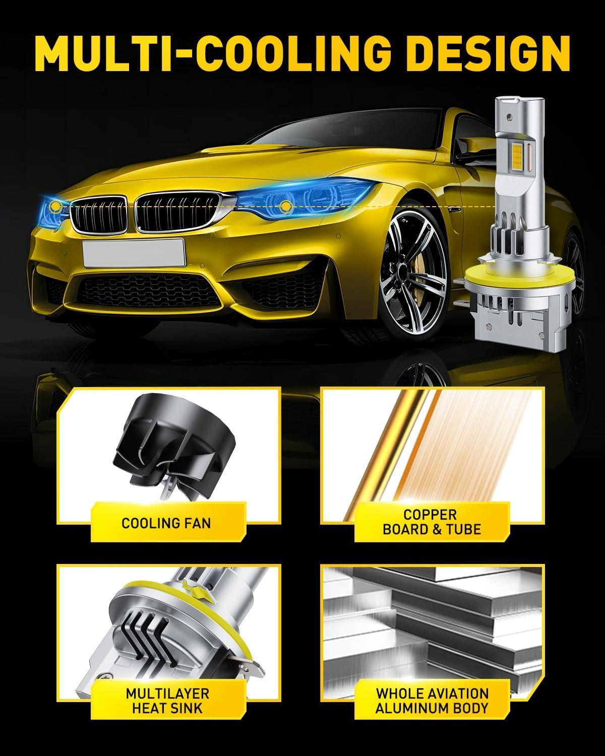 Ultimate Road Illumination: Experience extreme visibility with 80,000LM high-output 9005 h11 LED bulbs that provide 12 times the brightness of standard halogens. See farther down dark roads and gain a wider view of shoulders and ditches, giving you crucial extra seconds to identify and react to hazards.
