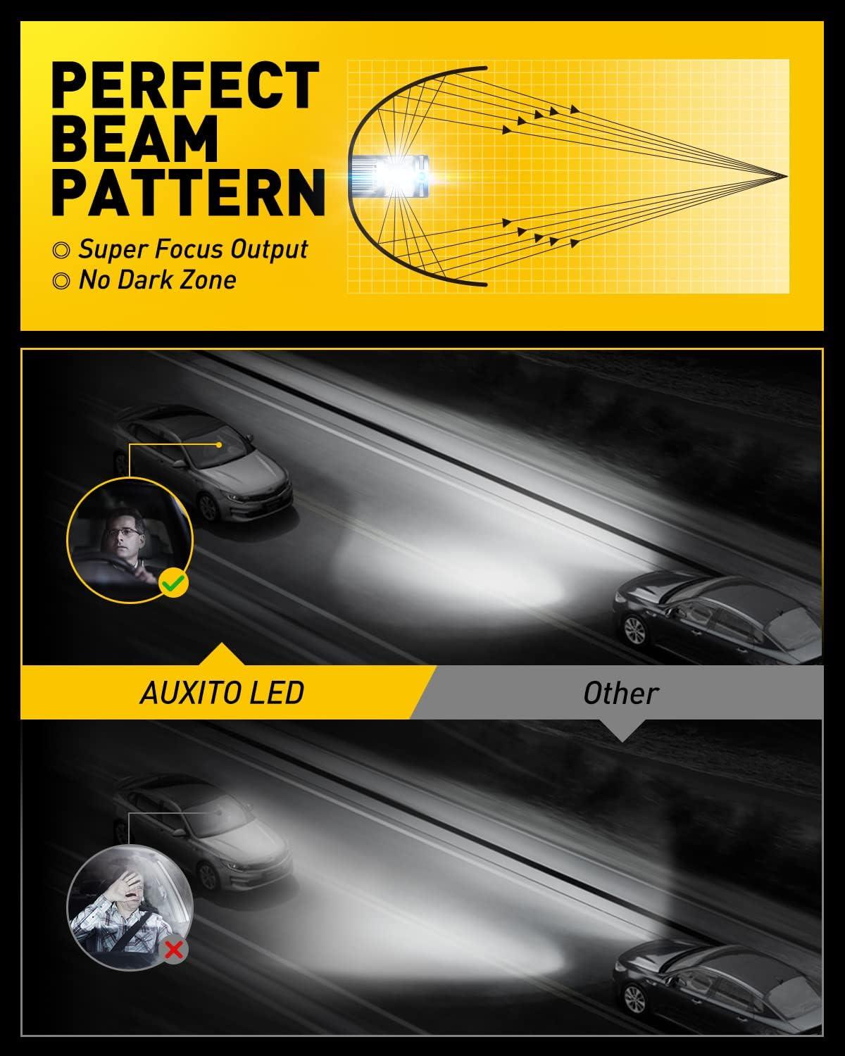 AUXITO fog light bulbs utilize the latest technology, featuring 0.04 inch ultra-thin light-emitting surfaces and 16 pcs chips per bulb. This design creates a focused and even light pattern without any dark spots, ensuring optimal visibility. Moreover, the light is precisely directed to avoid blinding oncoming drivers, maintaining a safe and comfortable driving environment for everyone on the road.