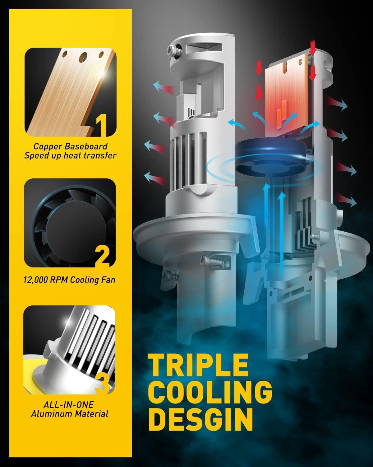The built-in copper tube and whole aviation aluminum body of the AUXITO fog light bulbs provide superior heat dissipation, effectively pulling heat away from the chips. This advanced cooling system maximizes the lifespan of the bulbs, ensuring they can last up to 50,000 hours. Even with daily usage of 12 hours, these bulbs are designed to last more than 10 years. Say goodbye to frequent bulb replacements and enjoy hassle-free driving.