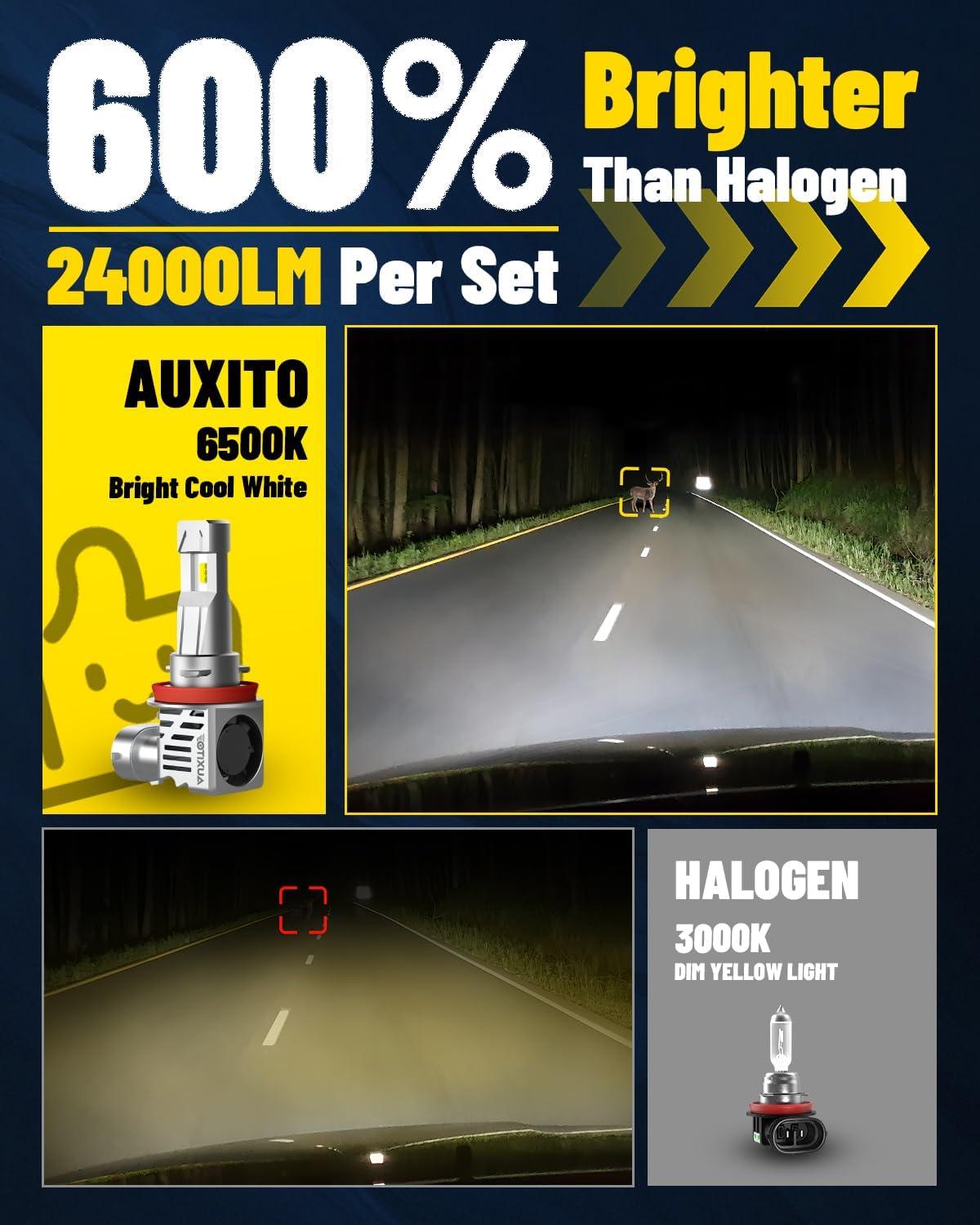 With the upgraded CSP chips, AUXITO H11 9005 bulbs combo delivers a staggering 50,000 lumens of light output, far surpassing traditional halogen bulbs. The 6500K cool white color temperature ensures crisp and clear visibility, making it easier to spot potential hazards like deer, animals, or falling rocks from a greater distance. This significantly enhances safety during those long, dark drives on rural roads or highways, allowing you to react promptly and avoid accidents.