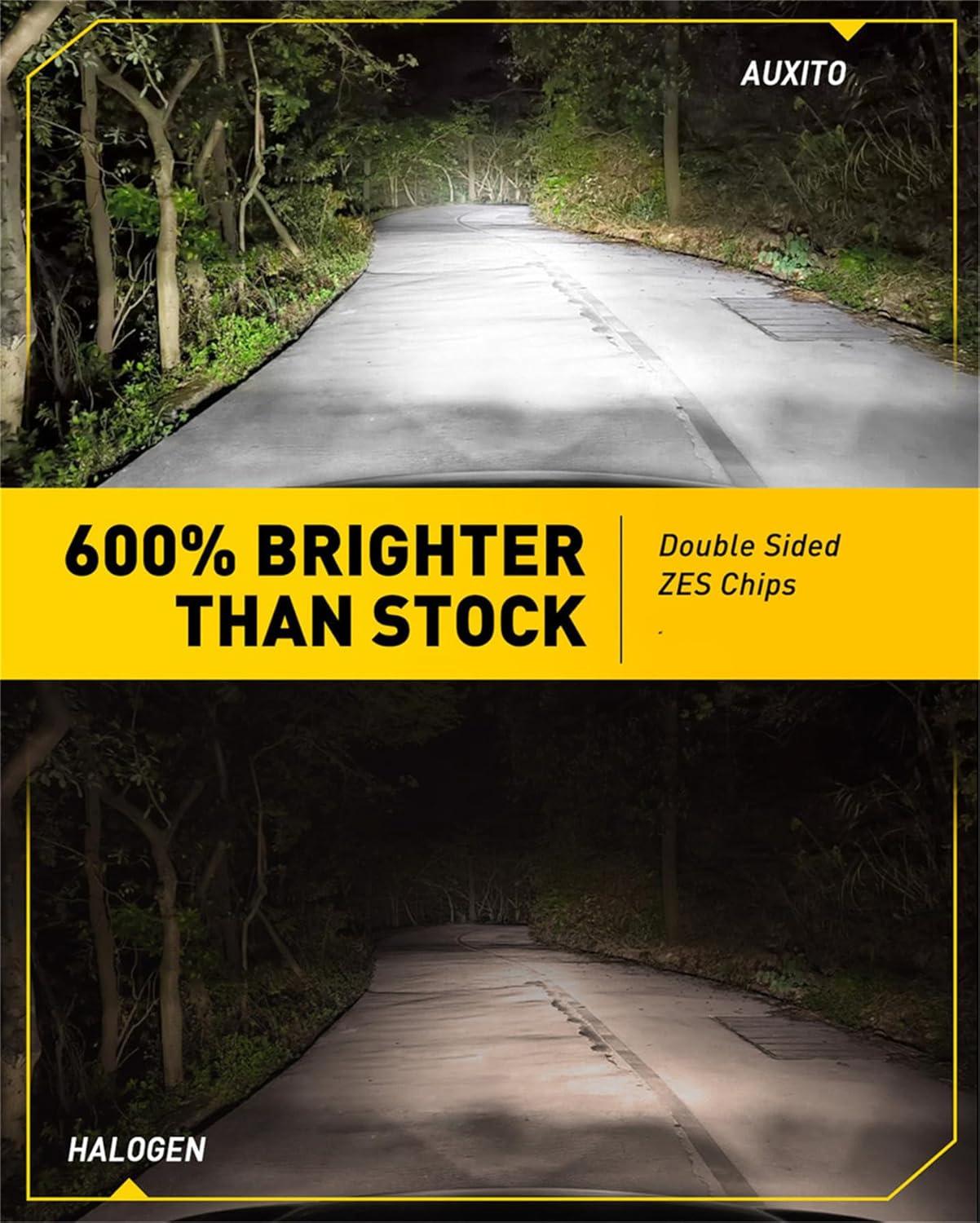 6500K Cool White Brightness: Experience enhanced visibility with 6500K cool white light, providing 600% more brightness compared to traditional halogen bulbs. Perfect for night driving and foggy conditions