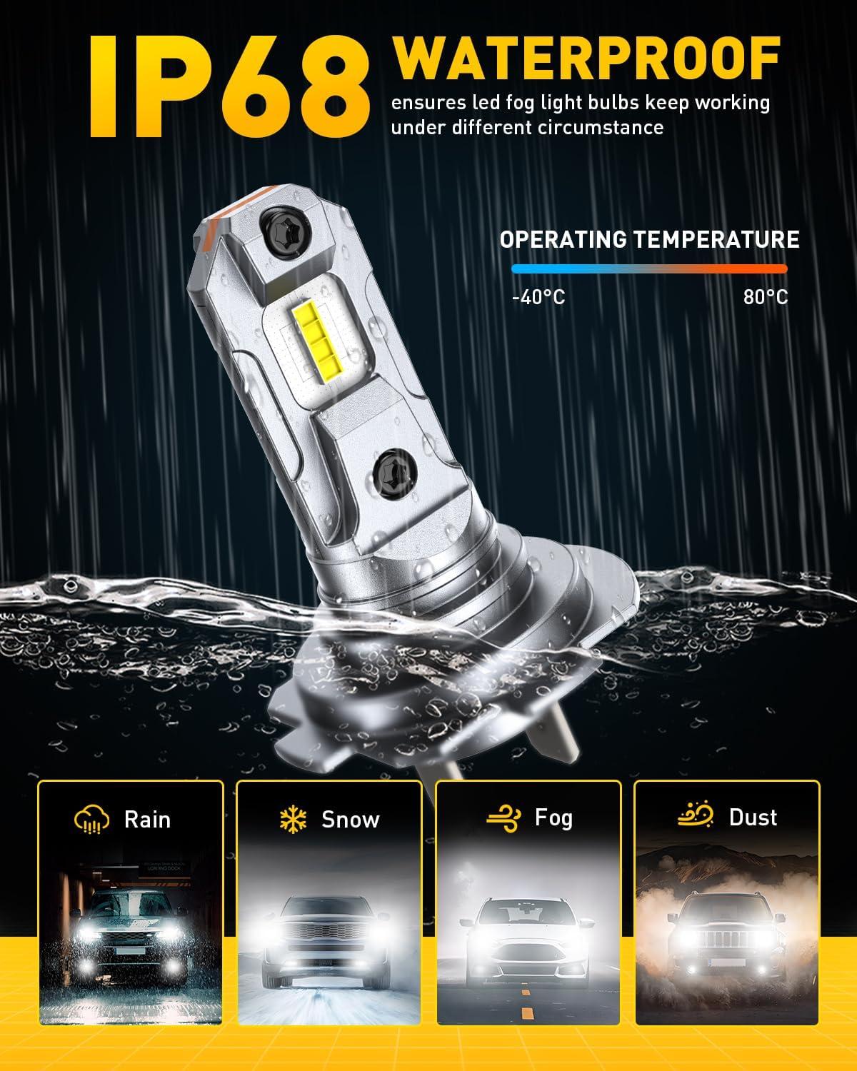 Universal Compatibility & EMI Resistance: Engineered with an intelligent IC driver for optimized power output and featuring IP68 waterproof rating, these bulbs are compatible with 99% of vehicles, providing a reliable and high-quality lighting upgrade that resists electromagnetic interference