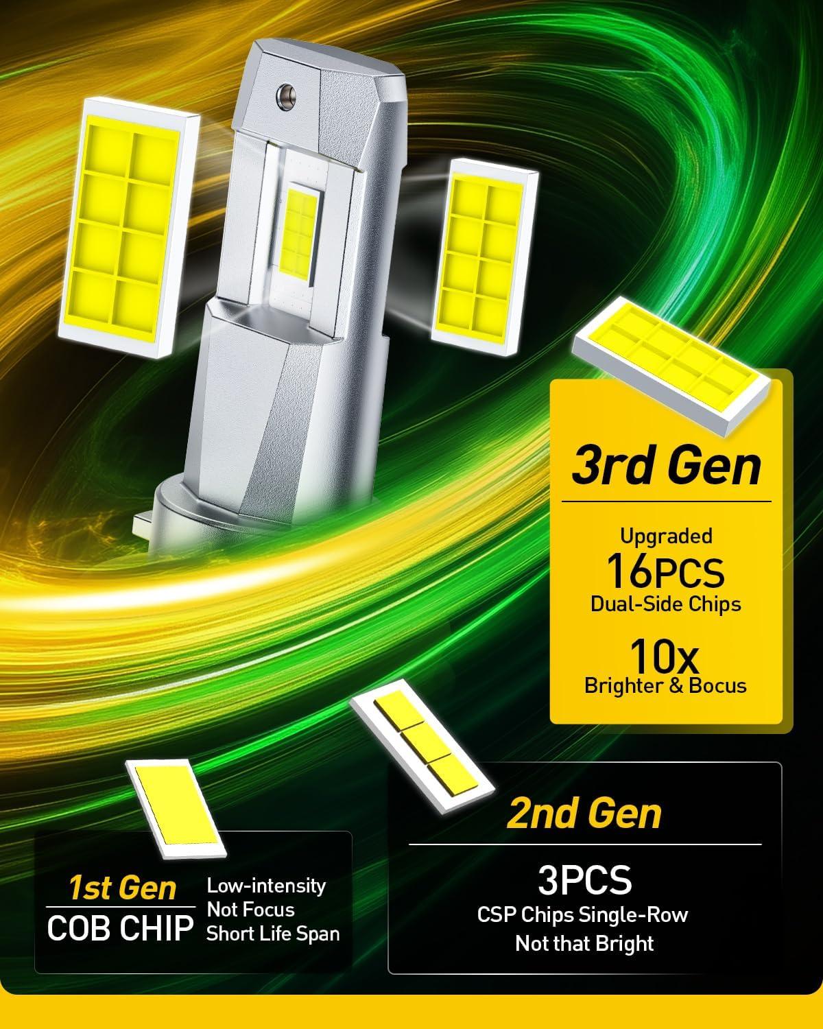 imageAUXITO 9005 LED Bulbs HB3 Light 6500K Daylight White UltraBright 60W Fanless Fog Light BulbTrue 11 Size PlugNPlay Pack of 2H11B