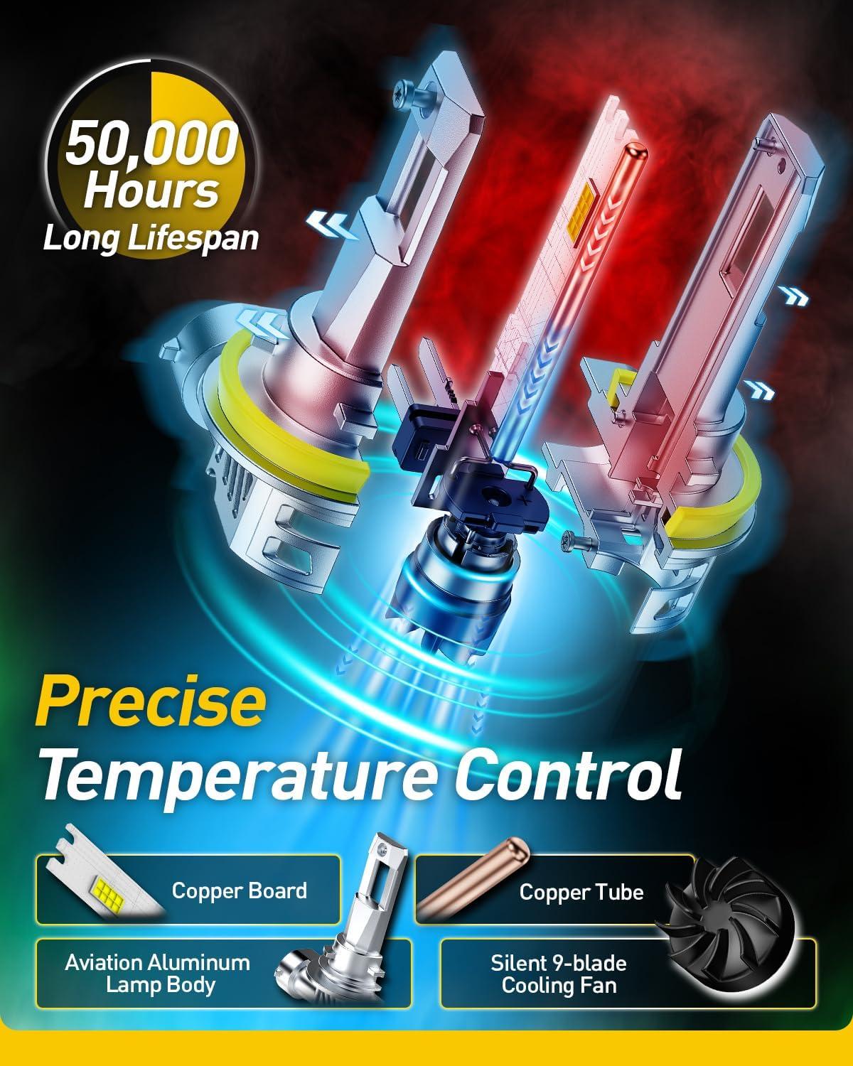 40,000 Lumen Visibility: Features 16pcs high-quality chips for intense, wide-reaching light, enhancing nighttime road coverage and reaction time.