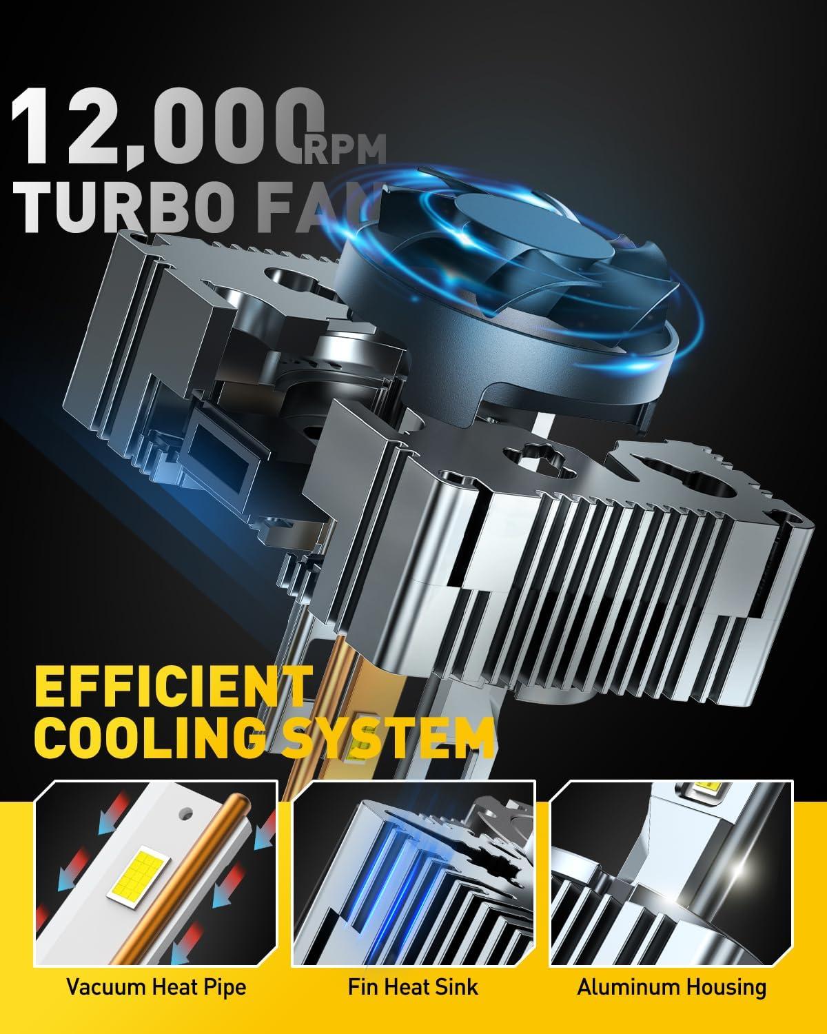 Advanced Cooling for 30 Years Lifespan – Built with a durable aluminum body, dual copper tubes, and a 12,000RPM silent fan for rapid heat dissipation. Lasts 200X longer than halogens.