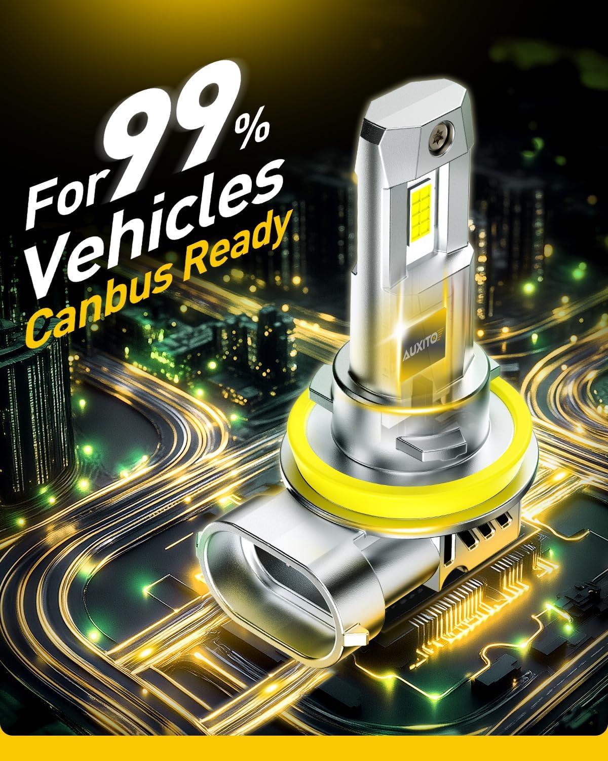 imageAUXITO 9005 Light Bulbs 50000LM 1000 Brighter 6500K Cool White HB3 Light with Fan LED Fog Light 30 Years Lifespan CANbus Ready No Flicker Pack of 2H11