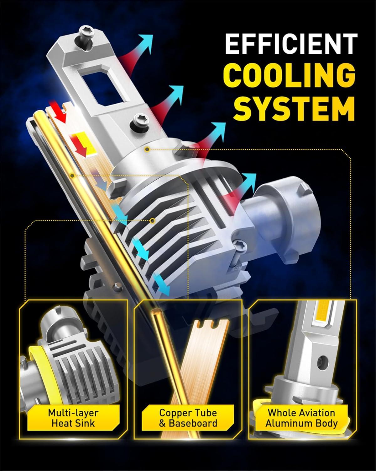 [Advanced Heat Management System]Designed with cutting-edge cooling technology and a copper core structure, the AUXITO 9006 bulb effectively dissipates heat, ensuring uninterrupted performance over its 60,000-hour lifespan