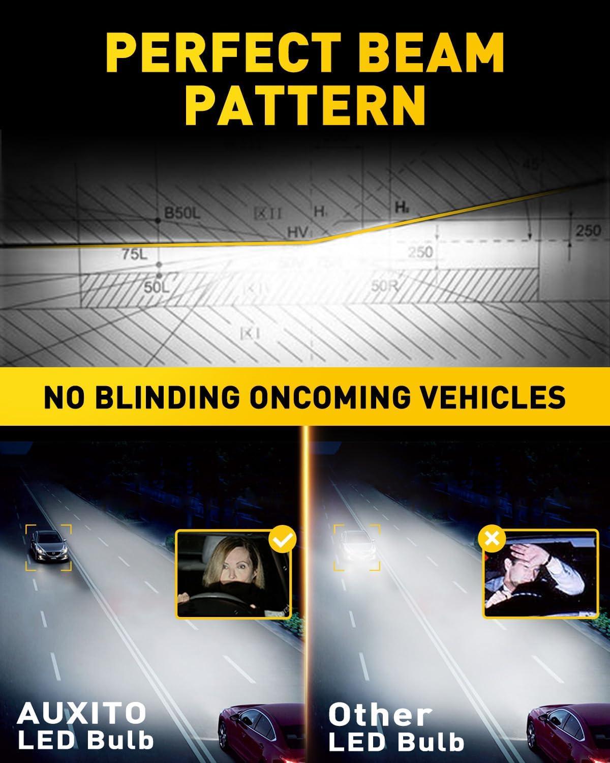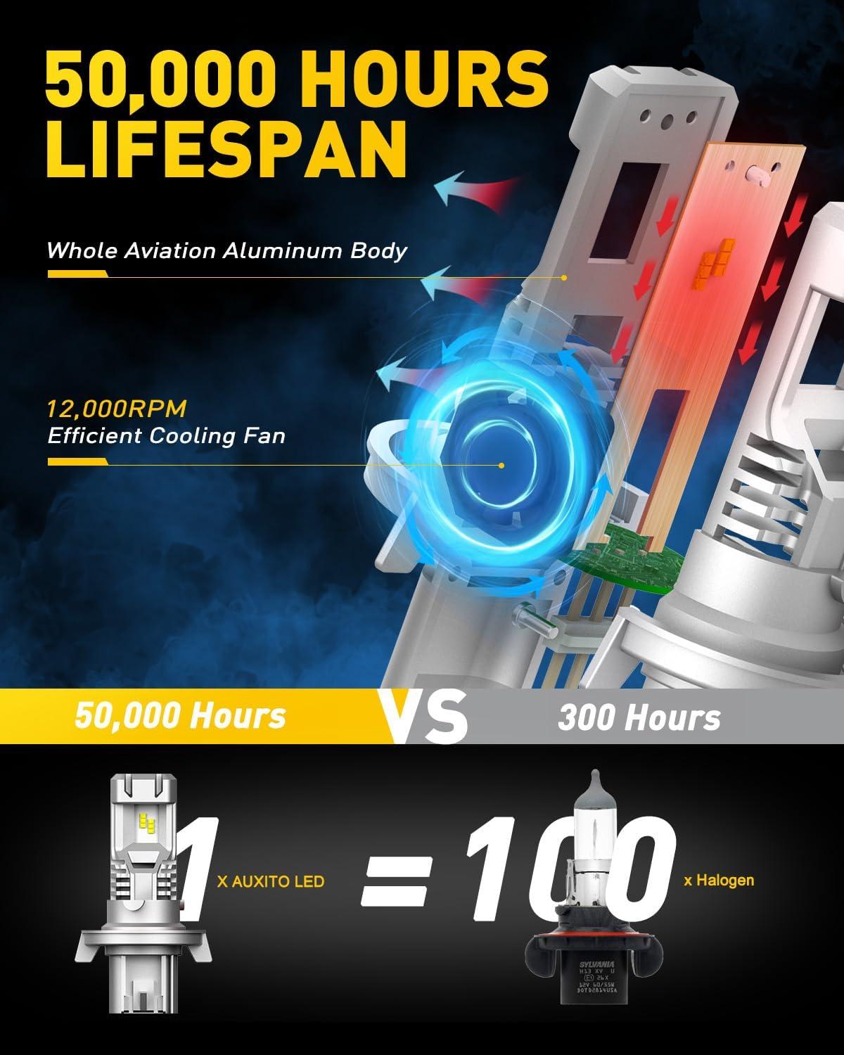[Advanced Heat Management System]Designed with cutting-edge cooling technology and a copper core structure, the AUXITO 9006 bulb effectively dissipates heat, ensuring uninterrupted performance over its 60,000-hour lifespan