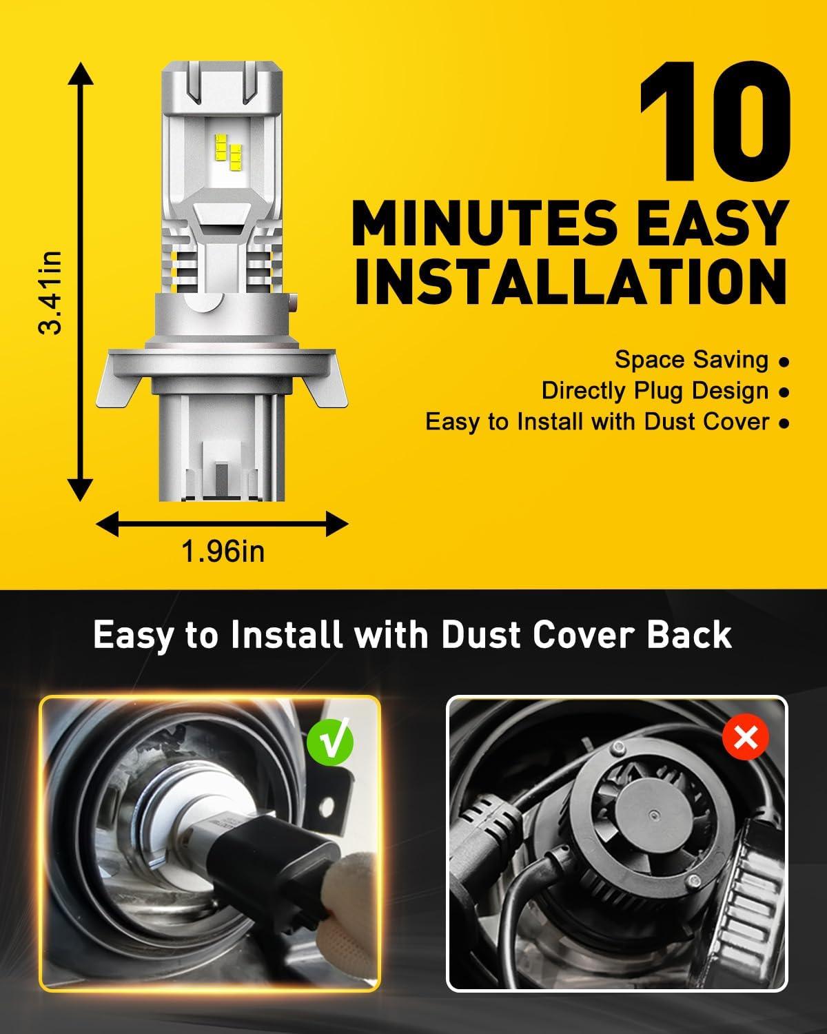[Plug-and-Play Installation for Convenience] With an integrated, direct-fit design matching halogen bulb dimensions, the AUXITO 9006 bulb allows for easy installation in minutes, requiring no adapters or additional tools, making it accessible even for beginners