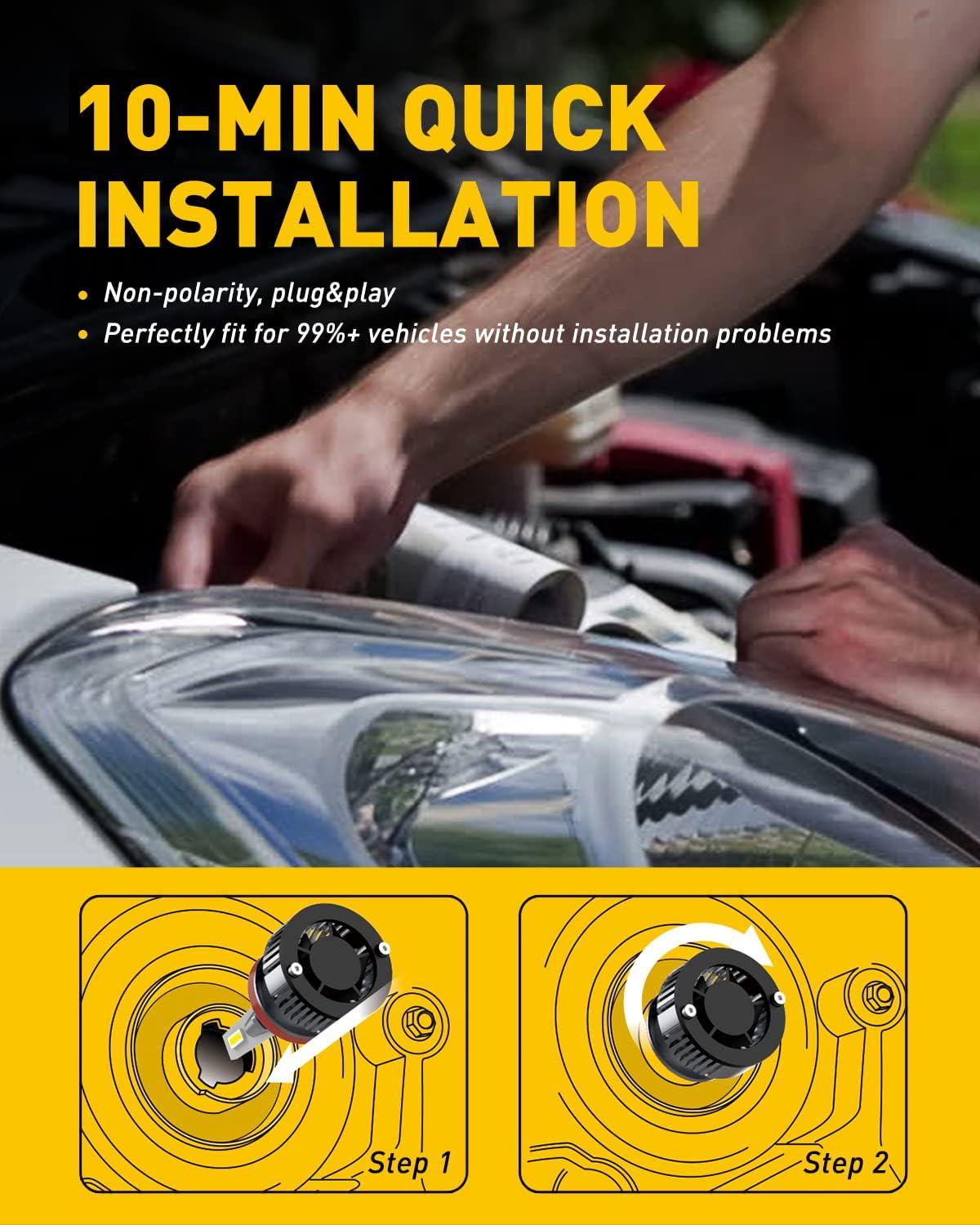 AUXITO 9006/HB4 fog light bulbs are optimised in appearance, almost 1:1 in size to halogen bulbs, which perfectly solves the problems encountered during installation, such as dust cover problems. True plug-n-play with no modifications required in just 5 minutes