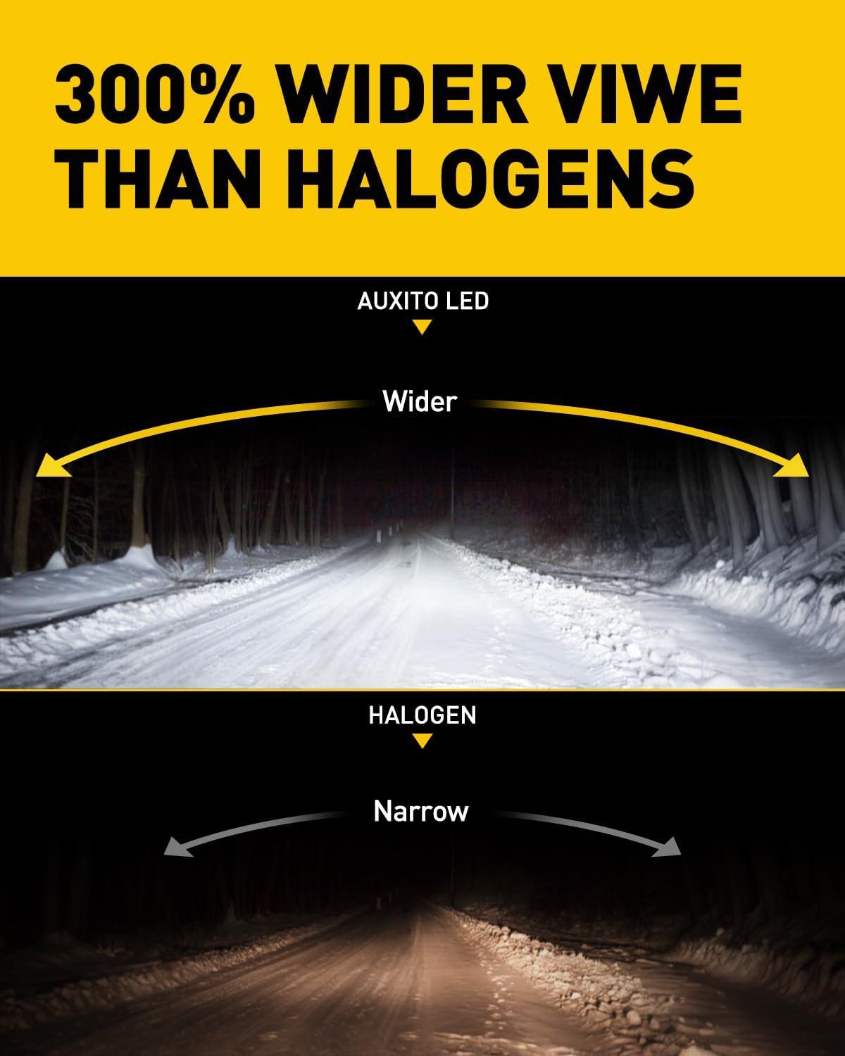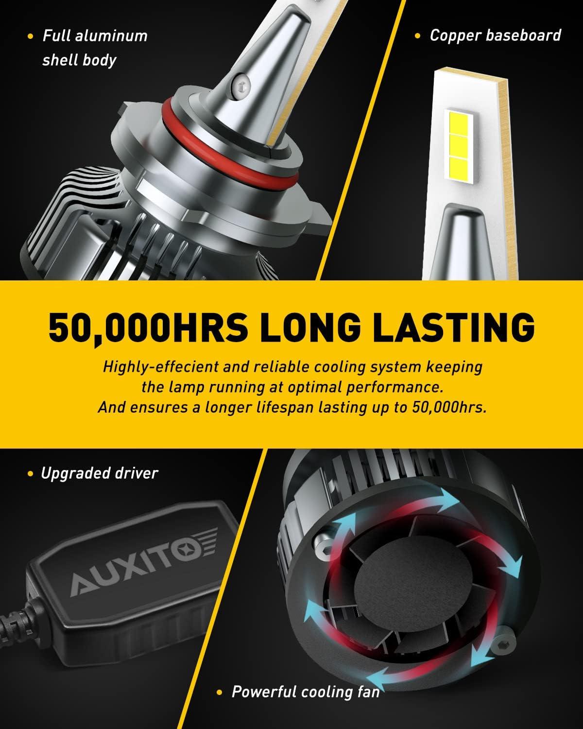 AUXITO 9006 bulbs use customized high power chips to deliver up to 7 times the illumination of halogen bulbs, providing clear vision for nighttime driving and earlier detection of o bstacles ahead, giving you a safe and reliable lighting experience