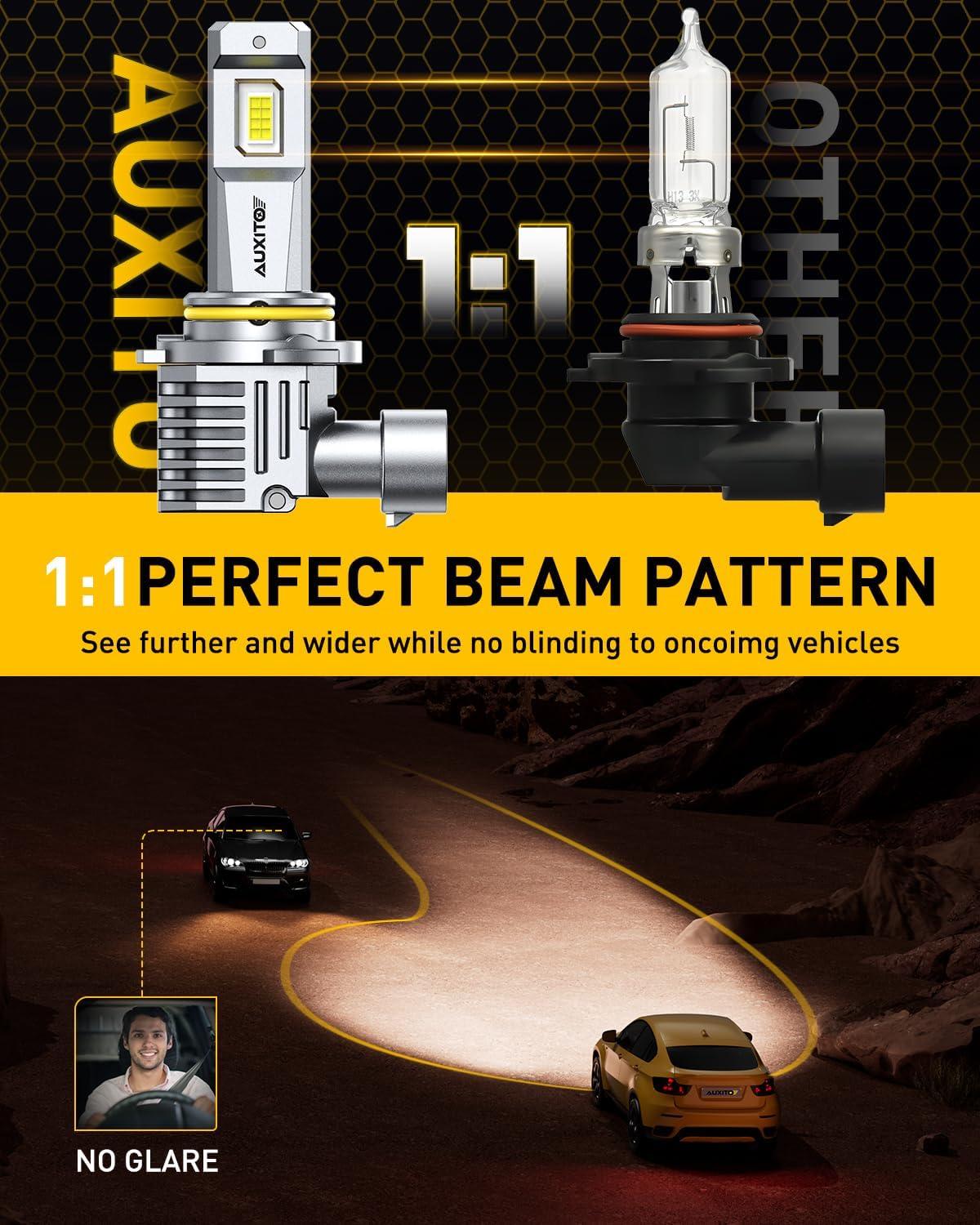 【Perfect Beam Design】The AUXITO HB4 light bulbs are design with a 1:1 halogen beam pattern. Their ultra-thin chip copper board features a 360-degree lighting spread, without dark spots or glare. It ensures enhanced visibility for both vehicles and pedestrians, thereby fortifying overall road safety