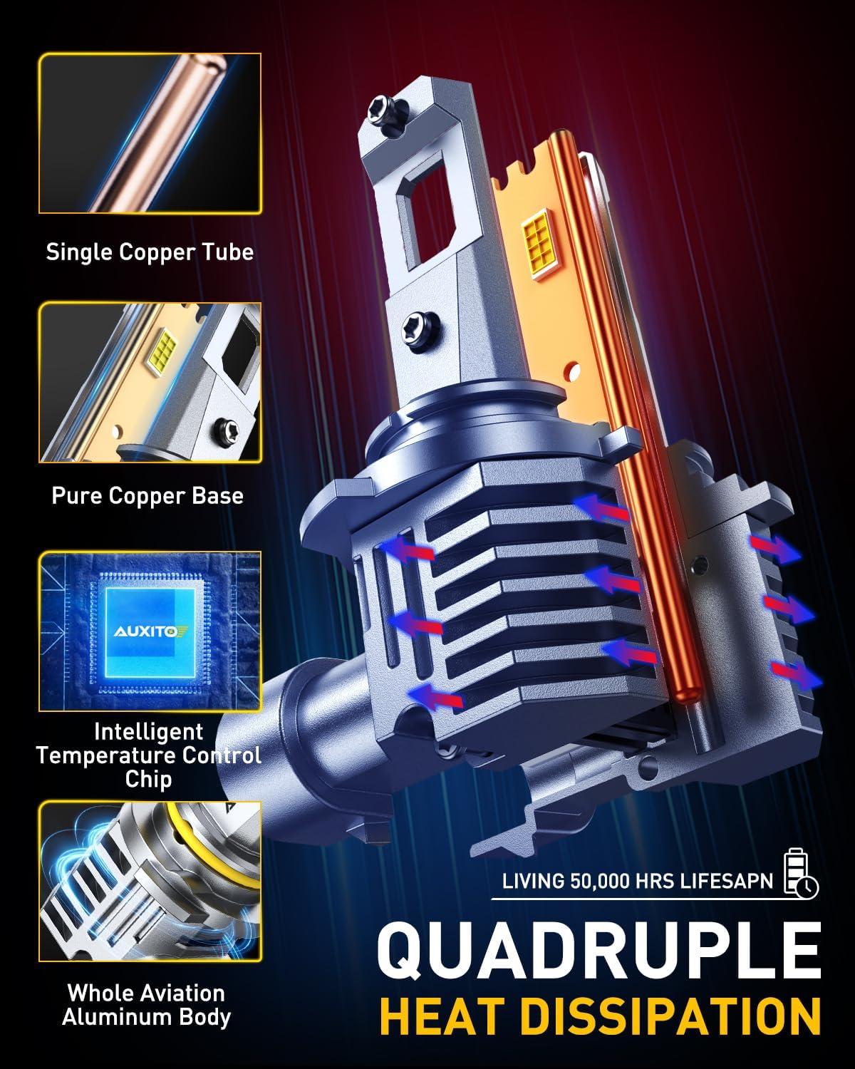 【50,000 Hrs+ Lifespan】The AUXITO 9006/HB4 fog bulbs feature a full aluminum body, a high-speed cooling fan, and a copper base board. Triple cooling design cab effectively curtails overheating, prolonging the bulb's lifespan to over 50,000 hours, help you get away from frequent burntout
