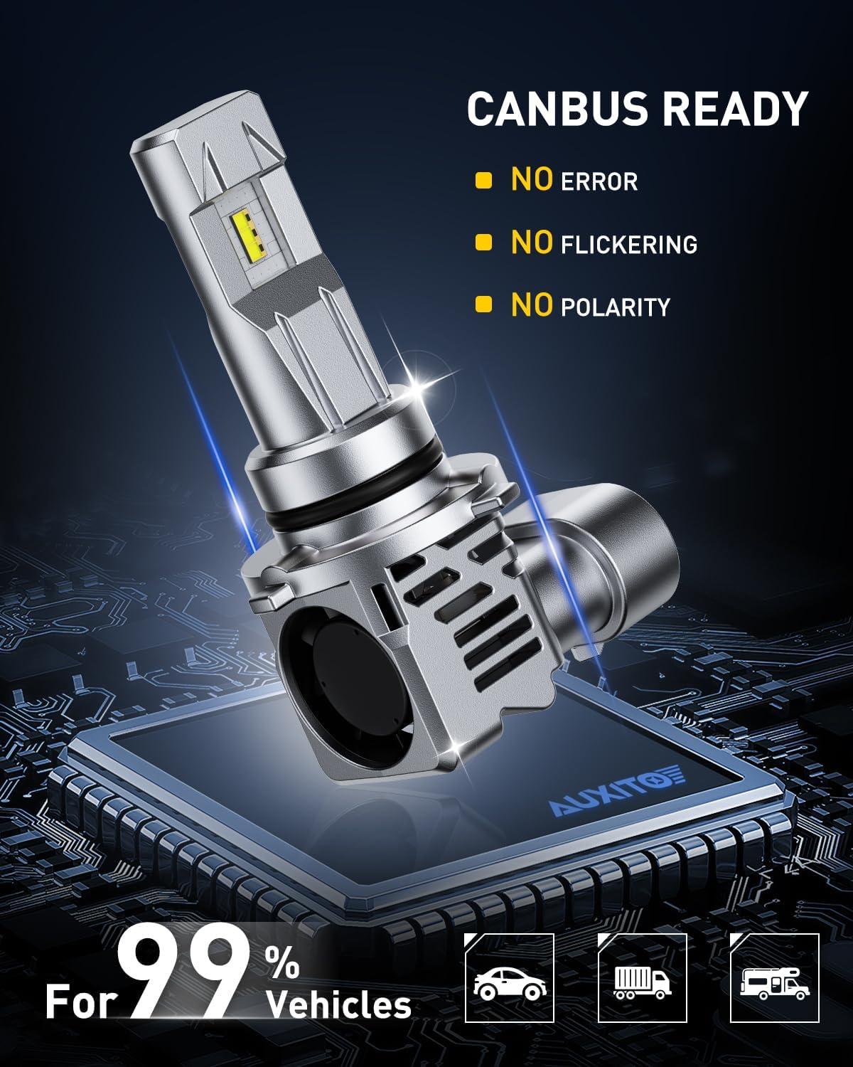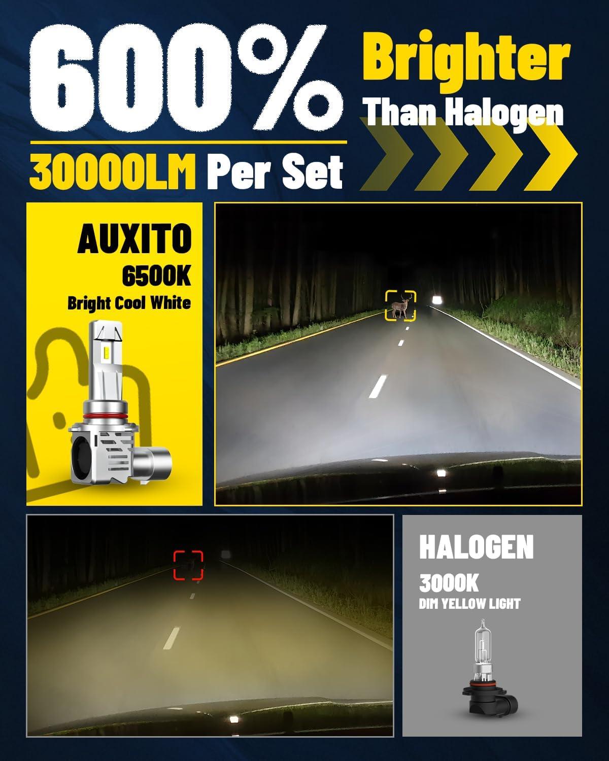 AUXITO 9006LED bulbs feature 60W intergated design, with AUXITO highest-grade LED chips. Ensure safer and reliable brightness upgrades