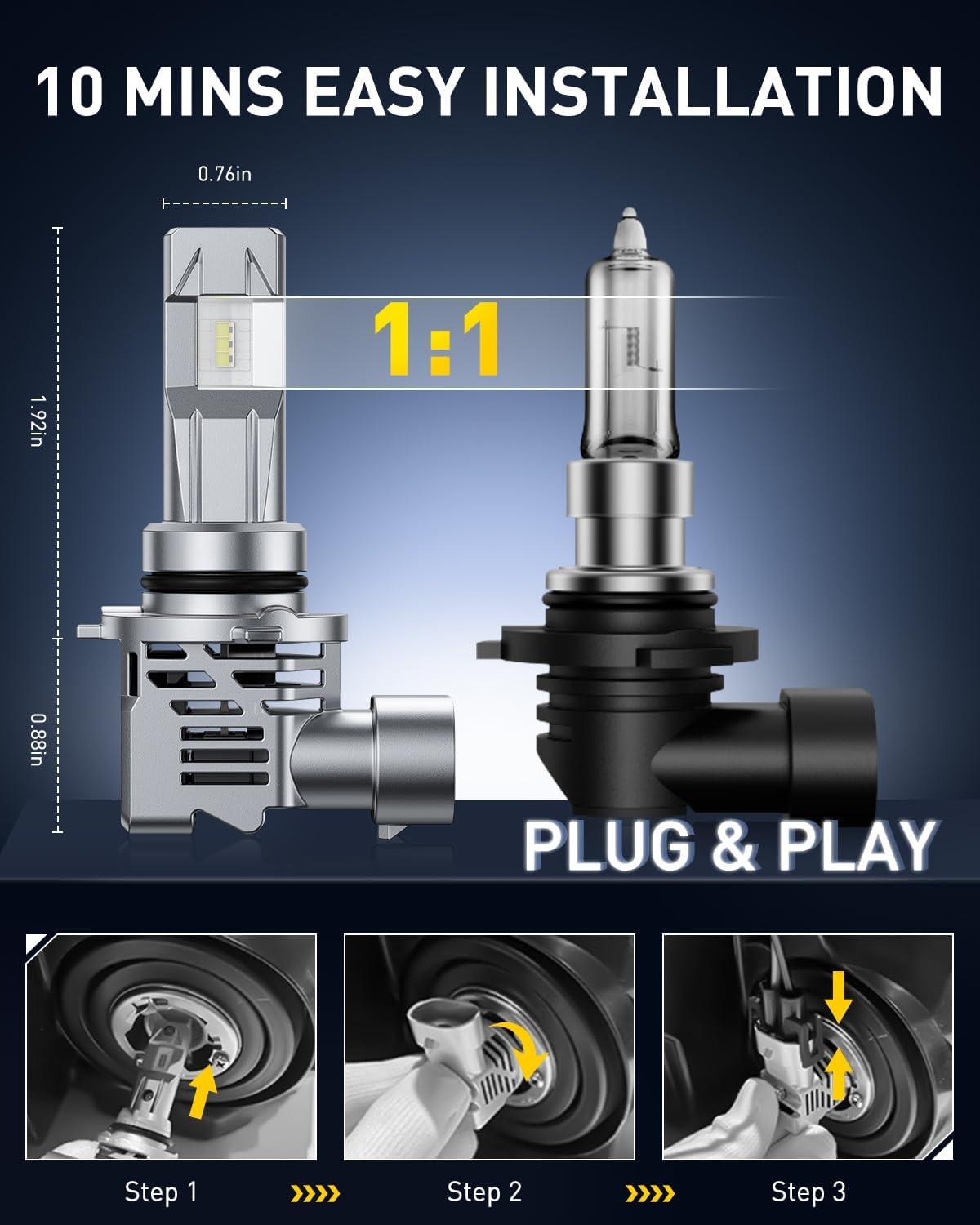 No external drivers and wiring for AUXITO 9006 LED light. Eenable quick setup. No professional tools or knowledge needed. Just twist out the old bulb and twist in the new one. Installs in 5 minutes
