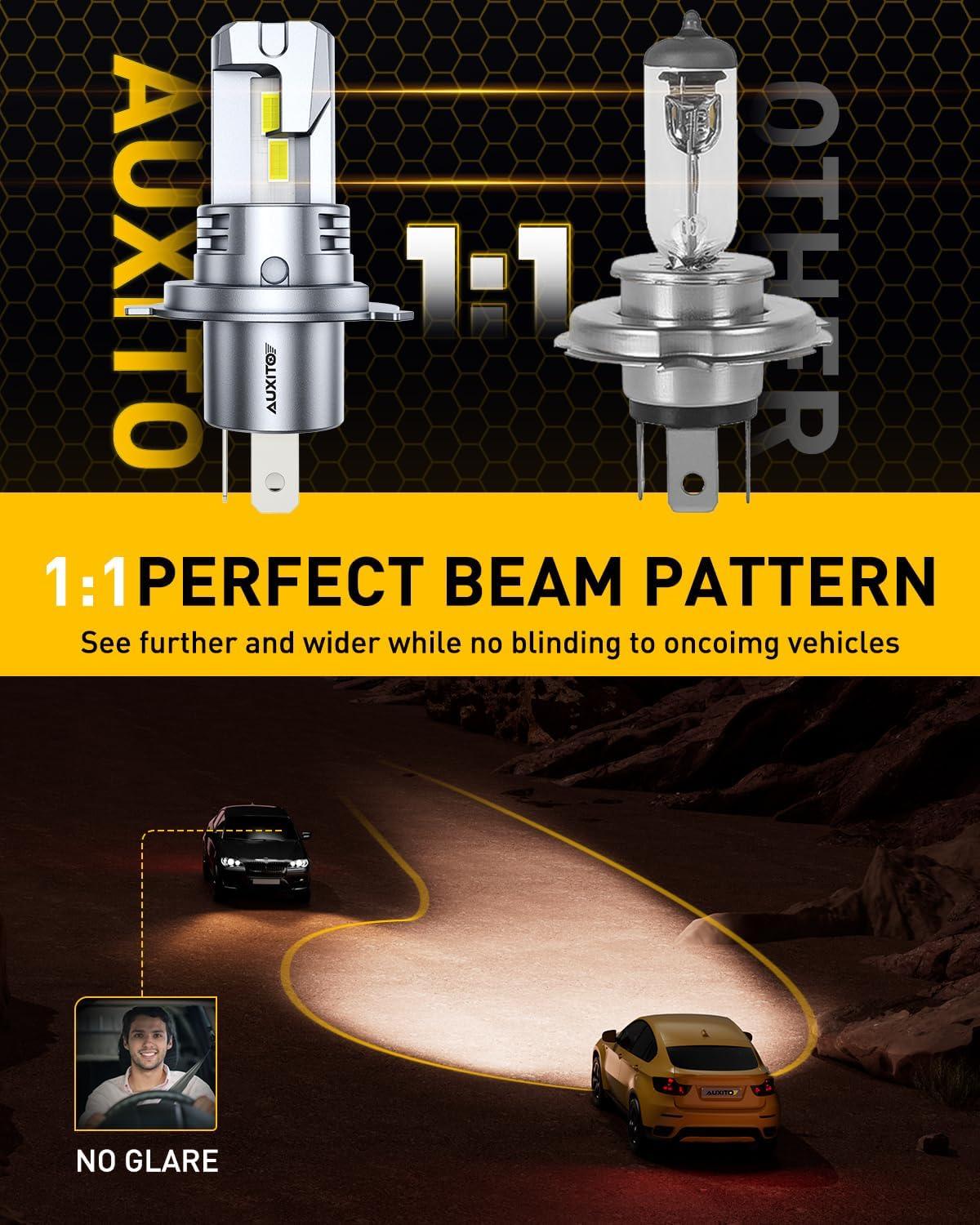 With precision-optimized optical design, AUXITO 9007 light bulbs replicate OEM halogen beam pattern to reduce glare and avoid dazzling incoming drivers, enhancing safety for all.
