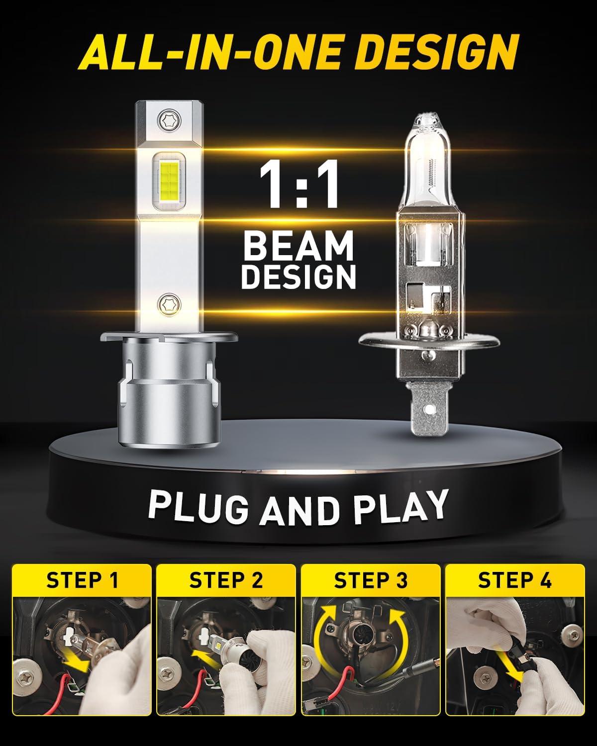 [1:1 Beam Pattern for Glare-Free Experience] Featuring 1:1 beam replication technology and an ultra-thin 0.03-inch substrate, this h13 bulb provides optimal focused lighting while maintaining complete glare protection for oncoming traffic
