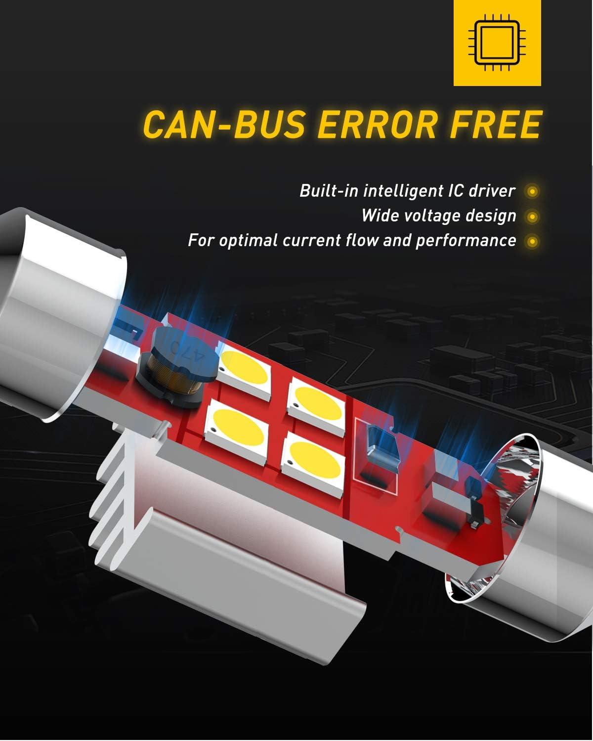 【CANBUS Error-Free for 99% Vehicles】 Integrated CANBUS system and smart constant current IC driver eliminate “bulb failure” warnings, hyper-flashing and radio interference. Compatible with 99% of cars, trucks and SUVs, no extra decoder required for most vehicles.