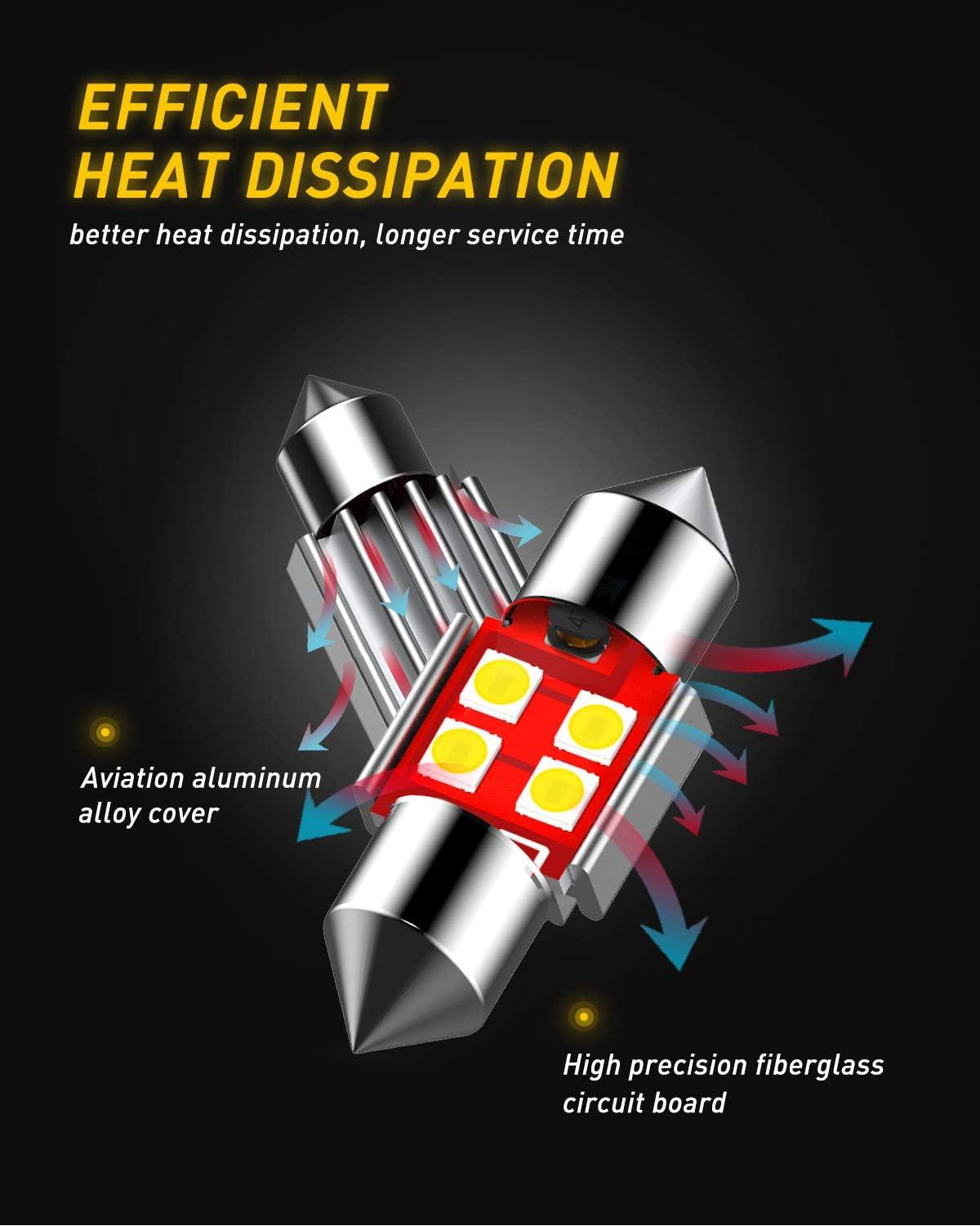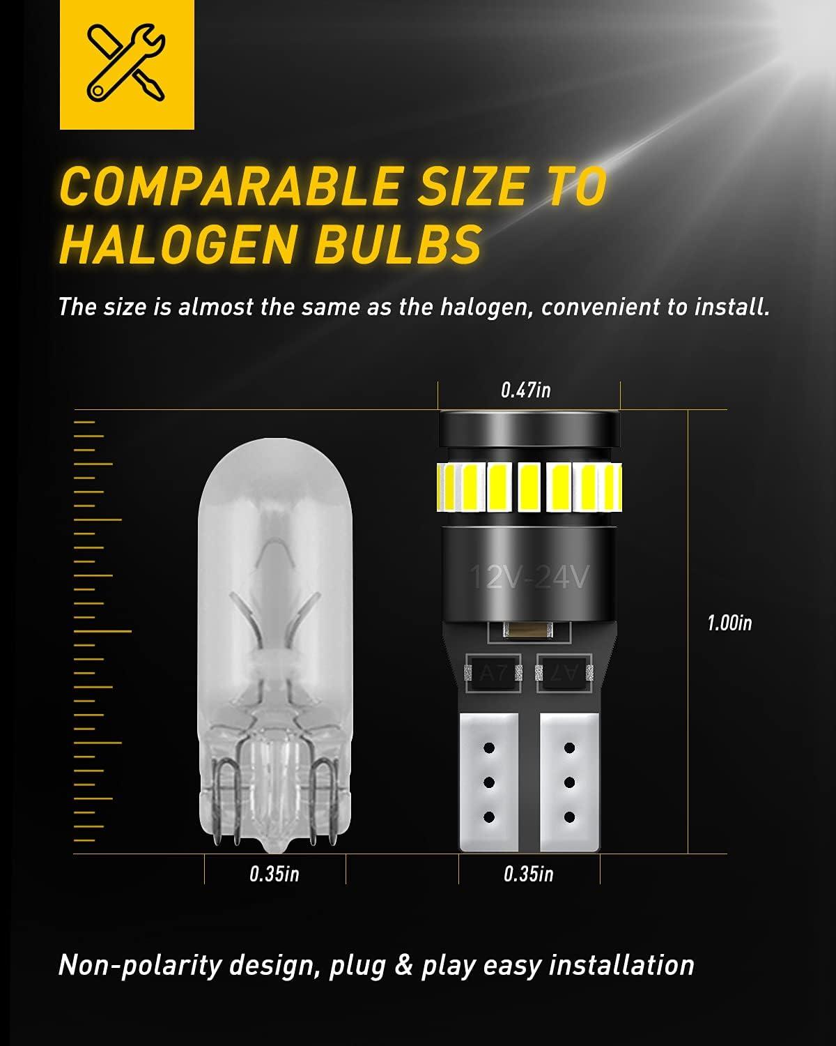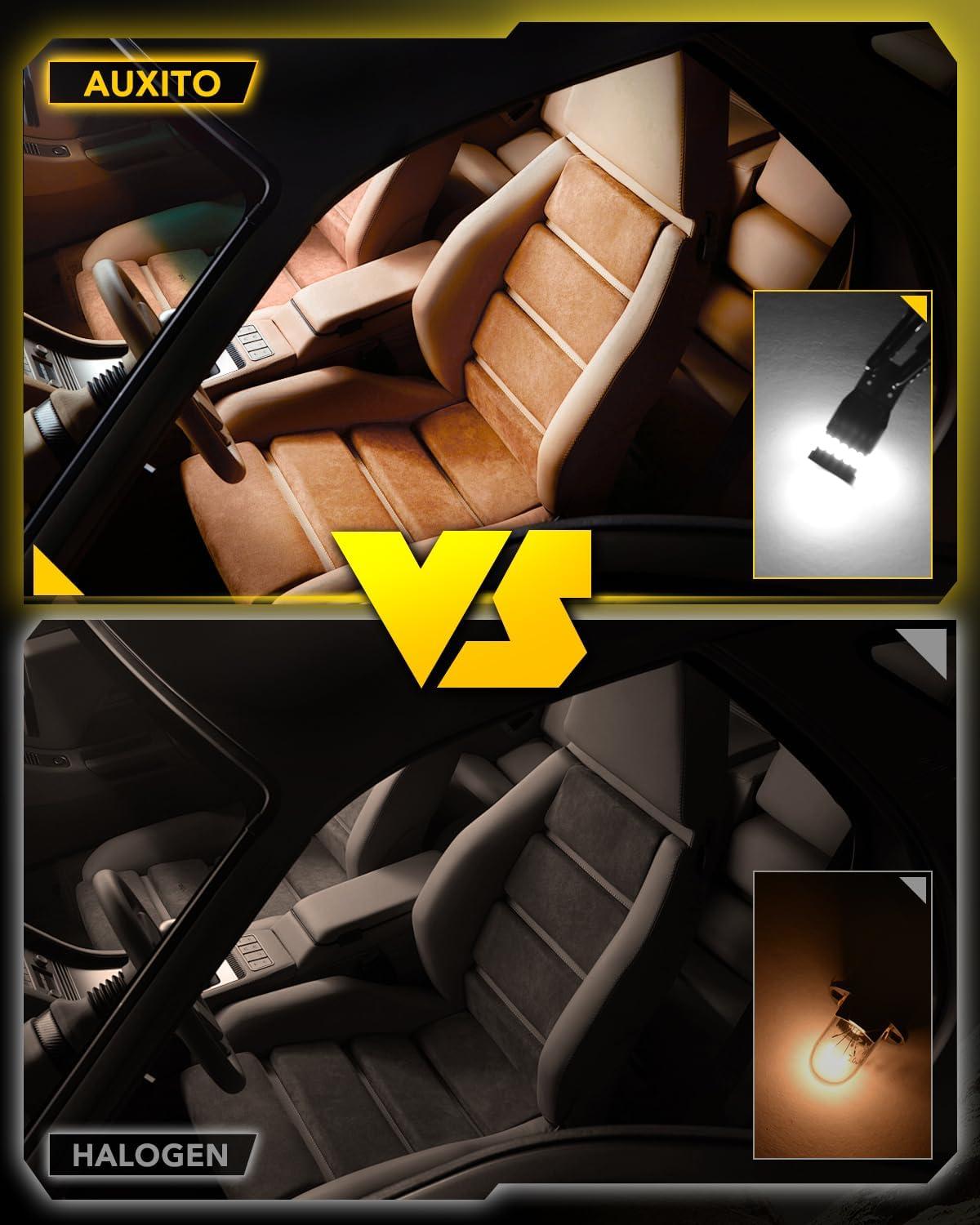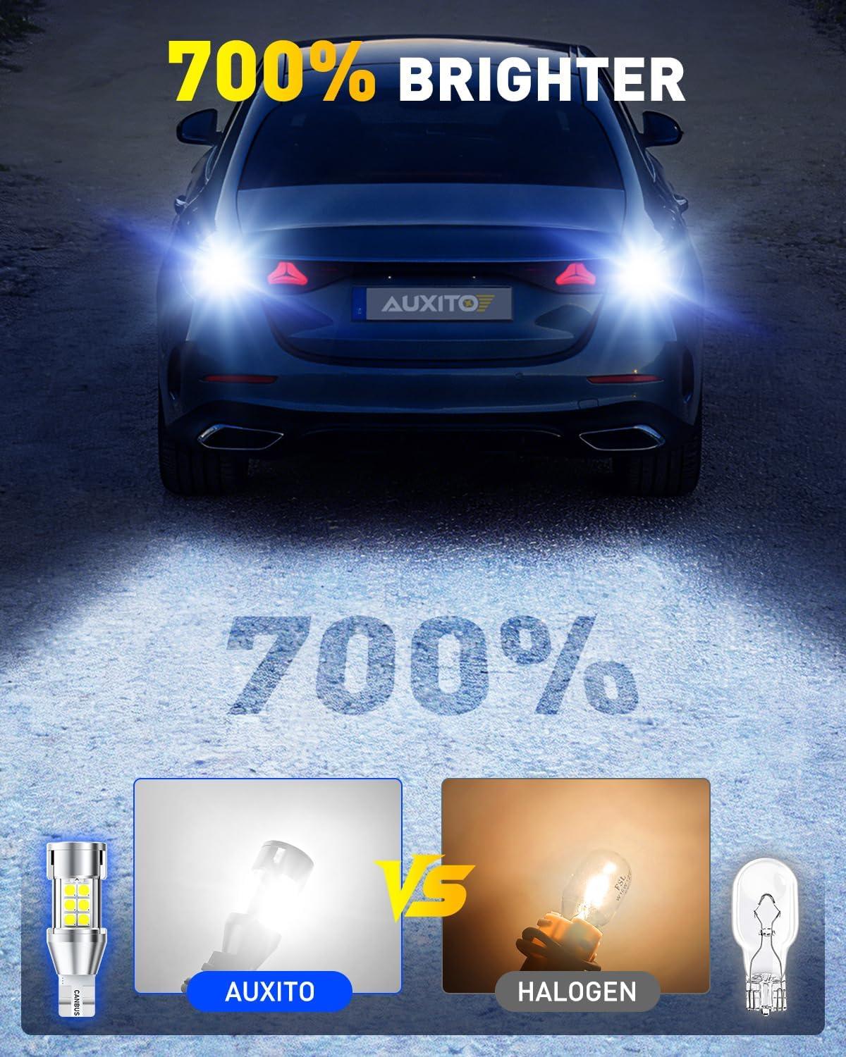 【700% Ultra-Brightness & 360°Clear Beam】Equipped with 18pcs high-power 3030-SMD chips, delivering 700% brighter light than original halogen bulbs. 360°full viewing angle with no dark spots, no shadows, 6500K bright white light ensures maximum visibility for safe reversing even on rainy/foggy nights.