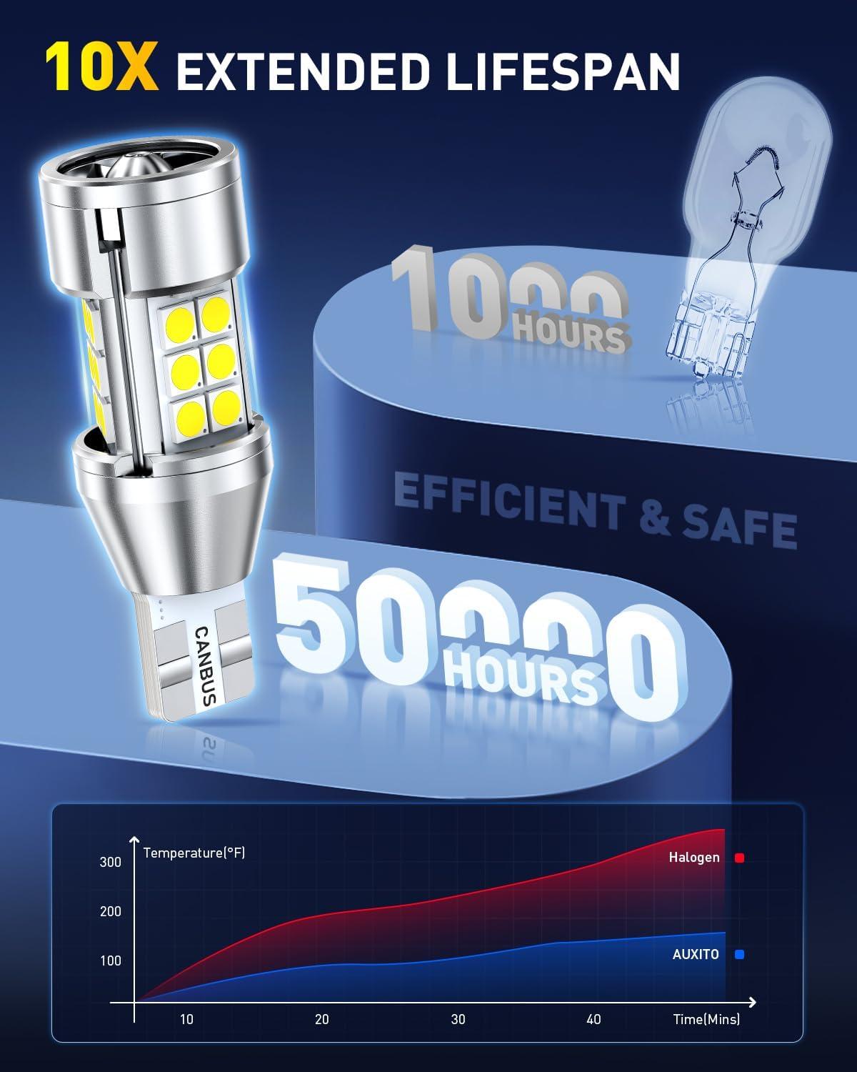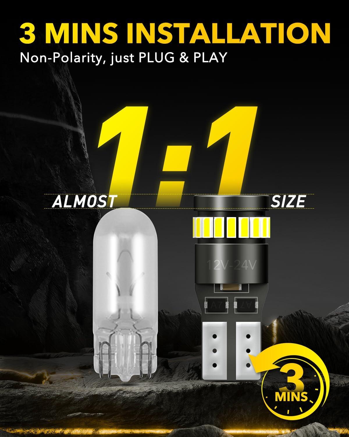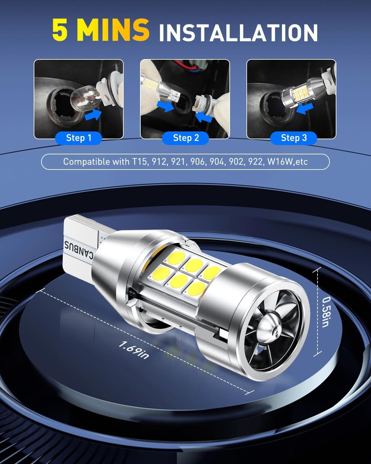【5-Minute Plug & Play Installation】Non-polarity design. Direct swap without modification, rewiring or flipping. Even beginners can finish installation in 5 minutes. Perfectly replaces 921, 912, 906, 904, 902, 922, 916, T15, W16W sockets. Ideal upgrade for reverse lights, backup lights, etc.