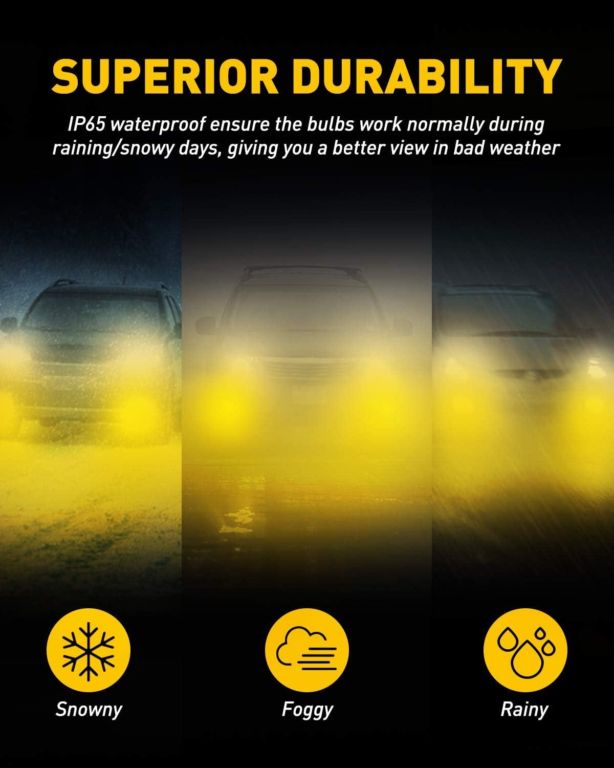 Superior Durability: IP65 waterproof rate, work well during rainy, snowy or foggy days, give you a better view in bad weather. Fit for 9040, 9045, 9140, 9145, 9050, 9155, H10 sockets, suitable for fog light bulb or DRL replacement