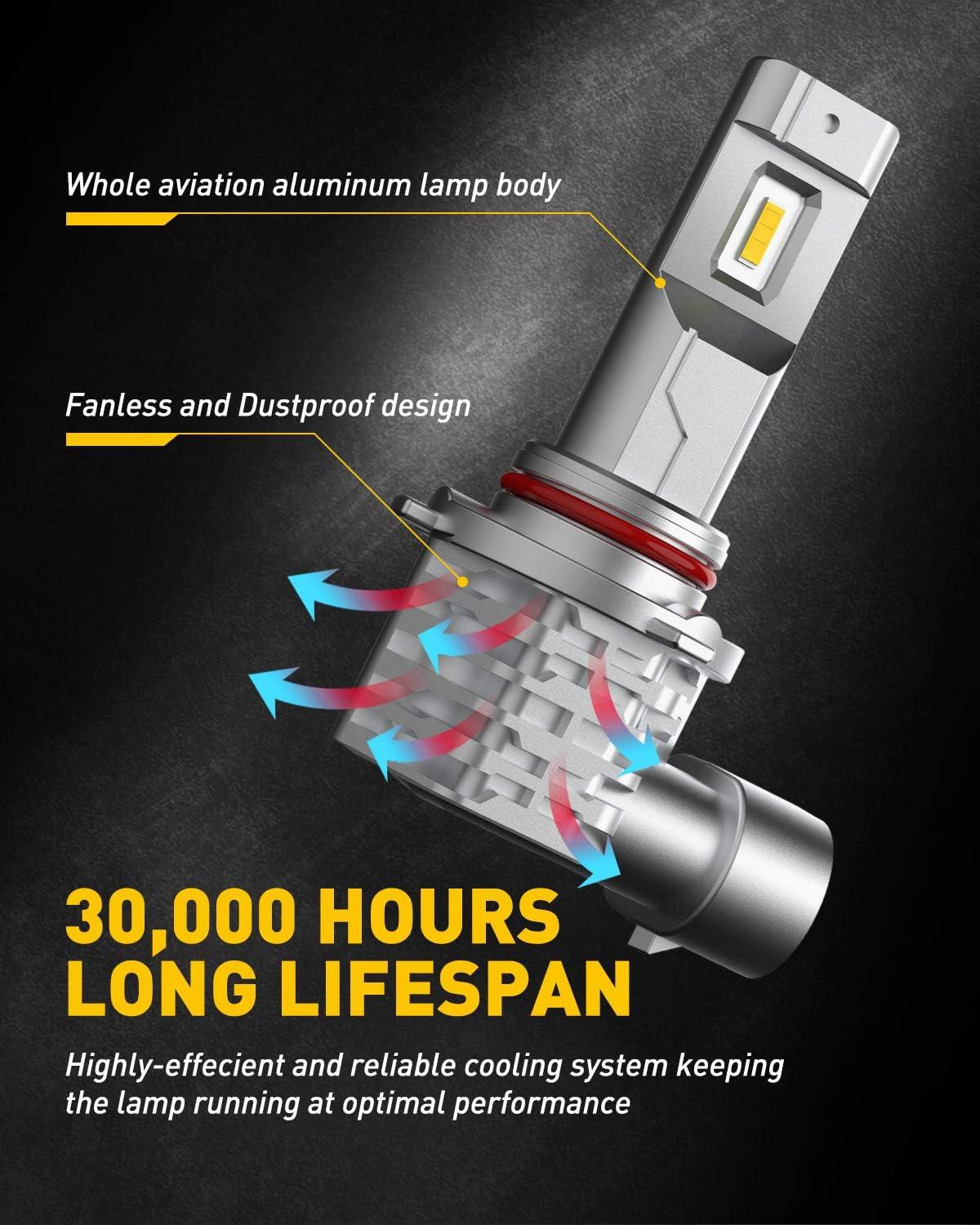 300% Brighter Than Halogen: AUXITO 9145 9140 H10 LED fog light bulbs adopt double sided CSP LED chips, giving 3000lm per bulb, 6000lm per set light output, 300% brighter than stock fog light bulbs. 6500K Xenon white. Allow you to see far and wider