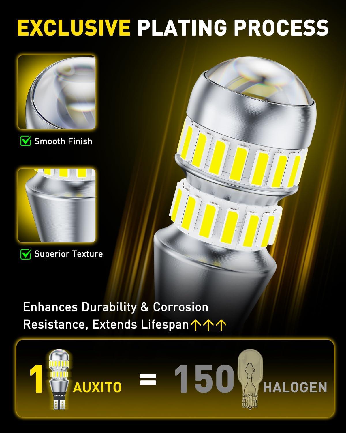 AUXITO 921 LED Bulb Reverse Light, Super Bright 912 906 904 916 T15 W16W LED Reverse Light Bulb Backup Lights Marker Lights, 6000K White, Pack of 2