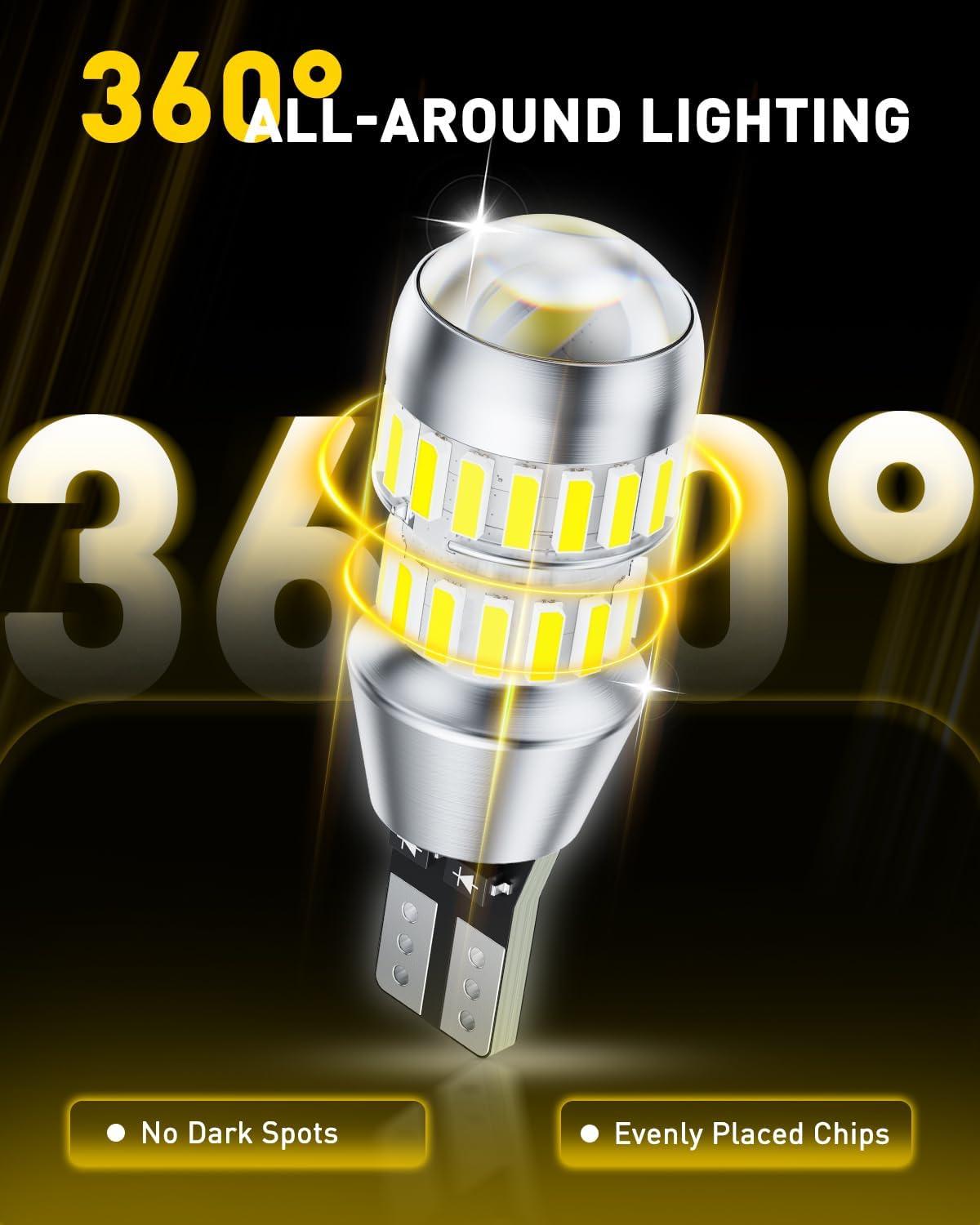 Equipped with high-quality LED beads, these 921 led bulbs are 400% brighter than traditional halogen bulbs. 6000K cool white light is close to daylight, and the precision optical lens concentrates light to clearly illuminate obstacles, steps, and low objects within 5 meters behind the car. It eliminates blurred vision during night reversing, making parking easy even for new drivers.