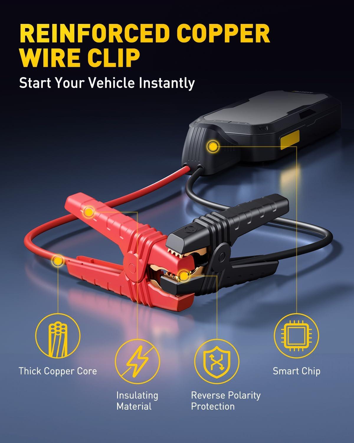 MULTIPLE SECURE PROTECTIONS: AUXITO car jump starter is designed with the latest QDSP technology, ensuring safety during use. Equipped with 10 intelligent protections, make sure you can operates efficiently in temperatures ranging from -4°F to 131°F