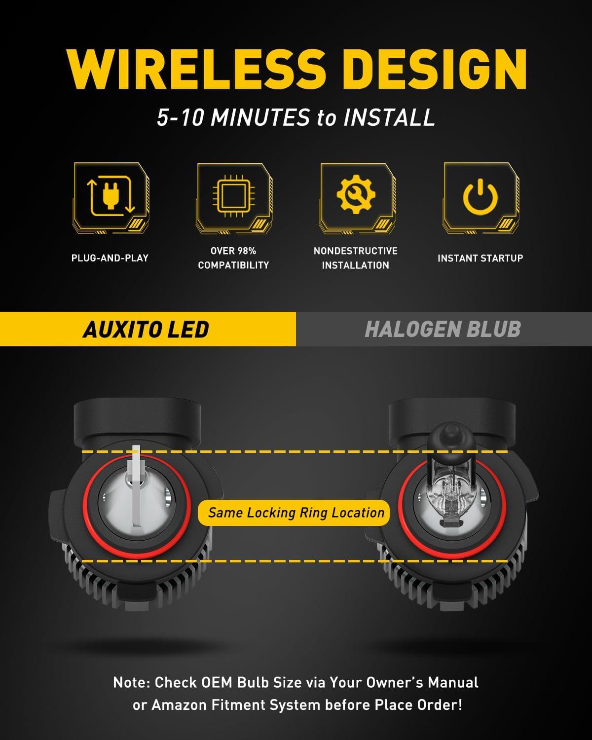 Plug N Play: Upgrade your vehicle effortlessly with AUXITO H10 LED fog light bulbs. Engineered to mirror the exact size of your OEM lamps, these bulbs guarantee a flawless fit. Enjoy a hassle-free installation with their non-polarized design, making it a simple plug-and-play experience for all drivers