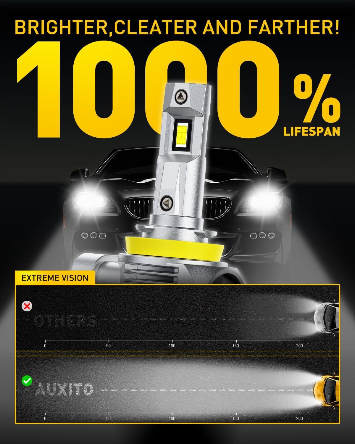 【Advanced Compatibility】AUXITO h8 bulb fits for 99% vehicle's computer system without error or flickers. For the few vehicles with sensitive systems, additional support is available to ensure your H8 light bulbs operate perfectly.