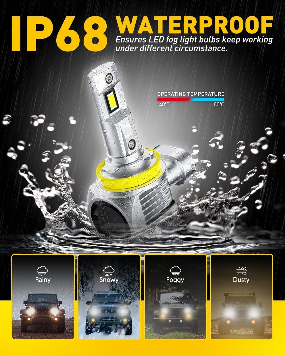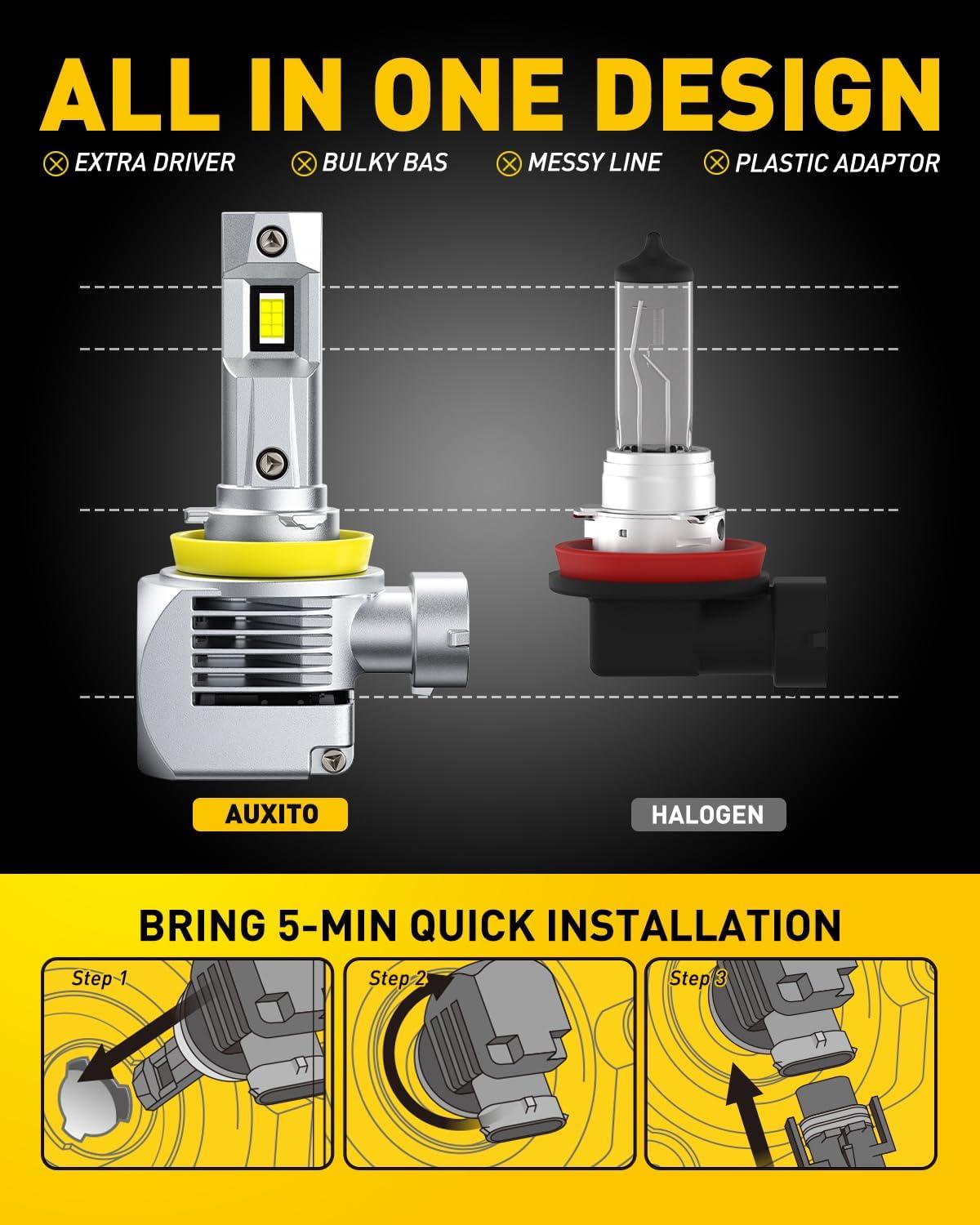 【Direct Fit Installation】Featuring an all-in-one compact design that matches original halogen dimensions, these H11 light bulbs install in minutes with true plug-and-play simplicity. No modifications or special tools are required for a hassle-free upgrade.
