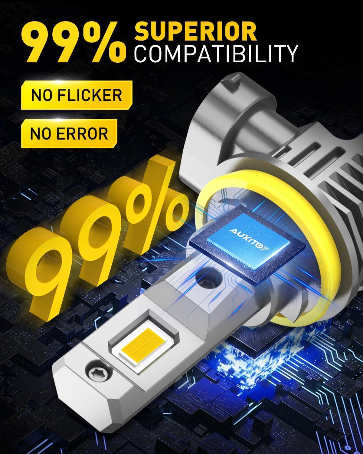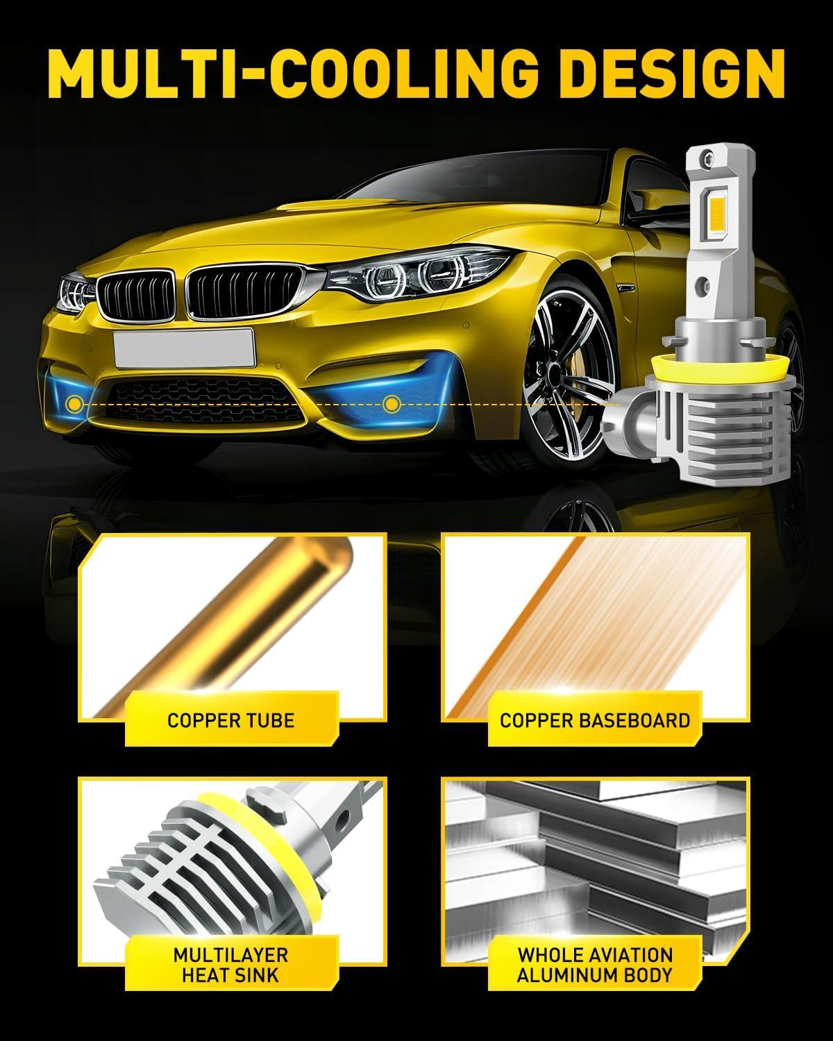 EFFICIENT HEAT DISSIPATION: AUXITO H11 LED yellow fog light bulb adopts intelligent temperature control system and high quality aviation aluminum material, which can effectively remove heat and rapidly cool the bulb, preventing it from burning out. Reduce the need for frequent replacement