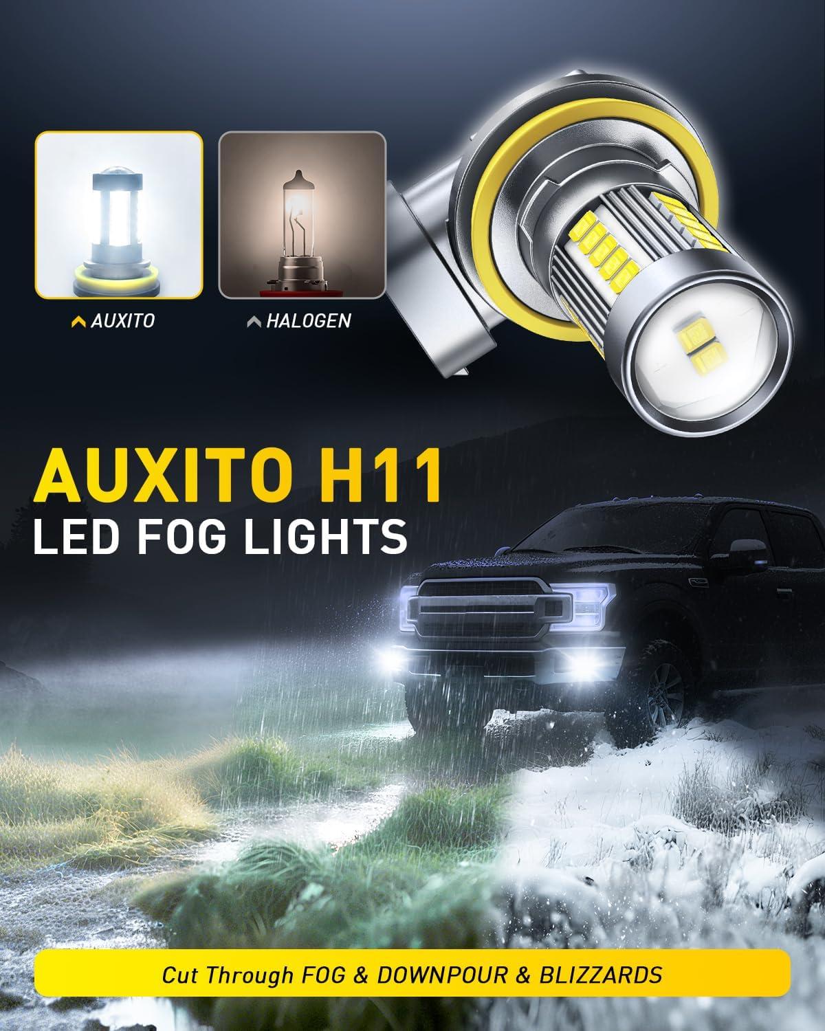 ENHANCED VISIBILITY: AUXITO H11 yellow LED fog light bulbs are made of advanced LED chips, 600% brighter than halogen lights. 3000K amber yellow light can effectively penetrate rain/snow/fog, improve road visibility, escort your journey and drive safely