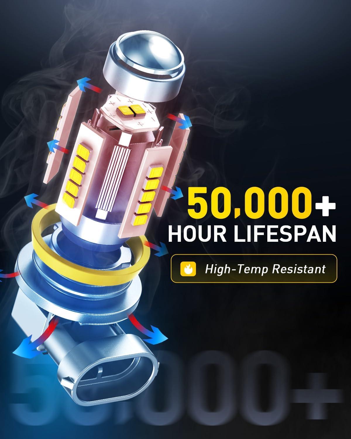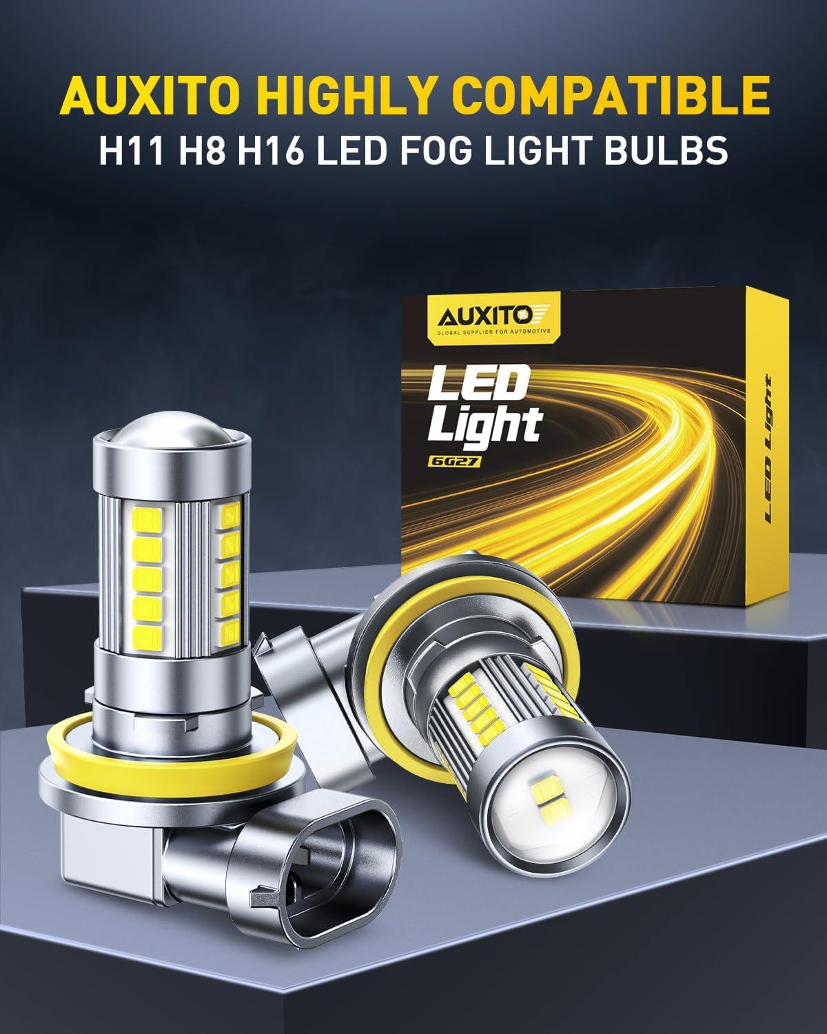 EFFICIENT HEAT DISSIPATION: AUXITO H11 LED yellow fog light bulb adopts intelligent temperature control system and high quality aviation aluminum material, which can effectively remove heat and rapidly cool the bulb, preventing it from burning out. Reduce the need for frequent replacement