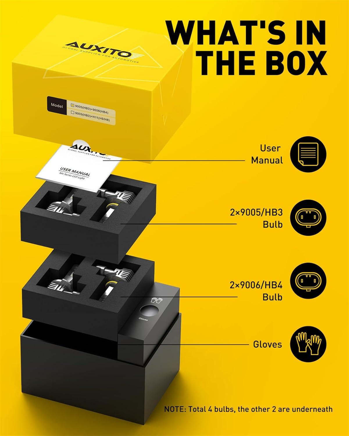 imageAUXITO 9005 9006 Bulbs 88000LM Brighter UltraBright Plug N Play Long Lifespan No Flicker 99 Compatibility 4PCSH4