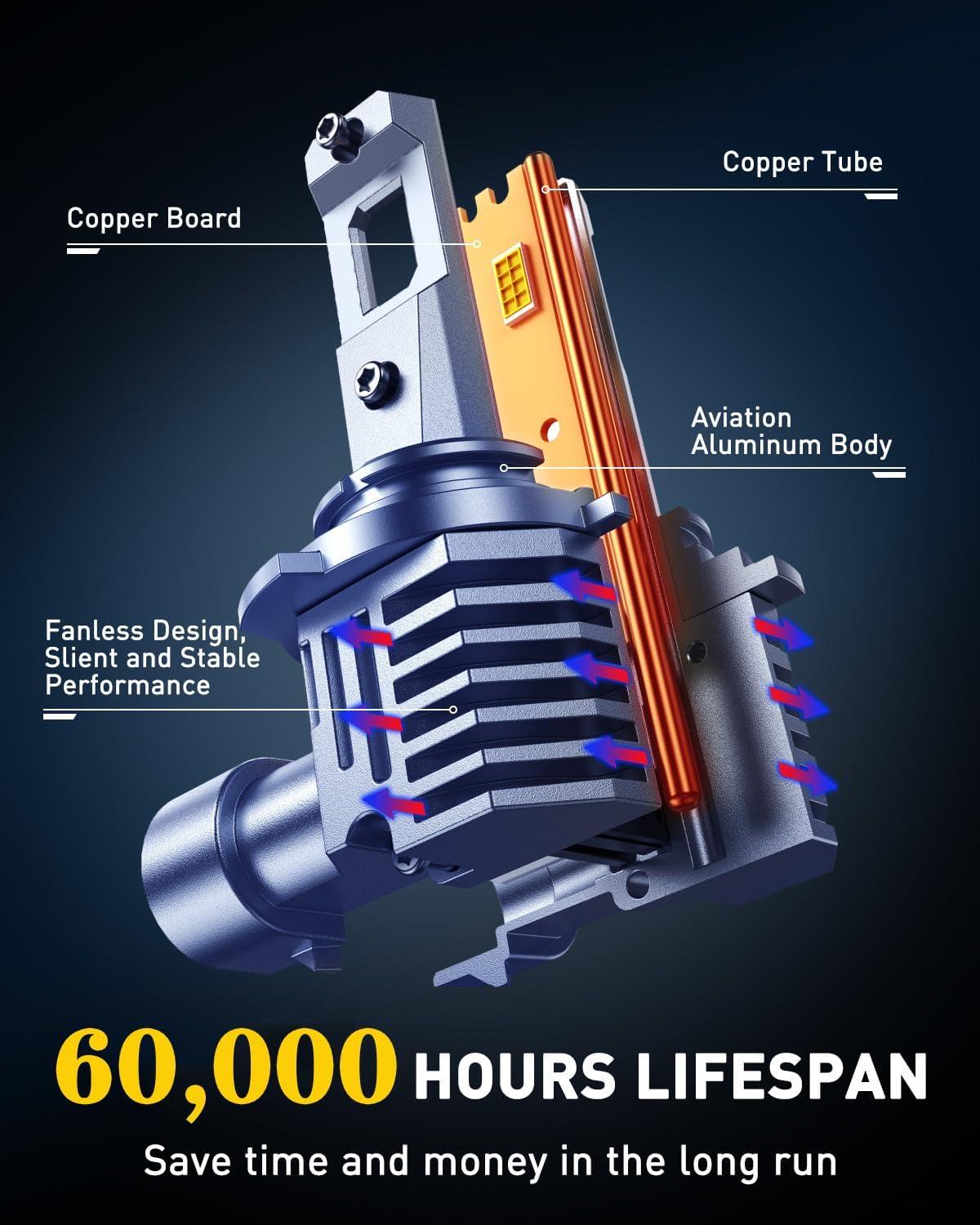 【Extended Service Life】 Through innovative thermal management and all-aluminum construction, AUXITO H11 fog bulb achieves remarkable 60,000-hour longevity – outlasting multiple vehicle ownership periods.