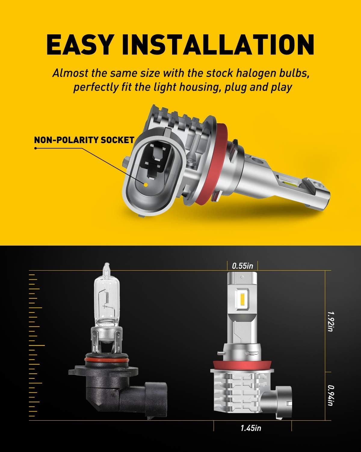 Easy to Install: Mini size designed h11 led fog light bulbs, almost the same size with the stock halogen bulbs, perfectly fit the light housing, non-polarity socket, plug and play