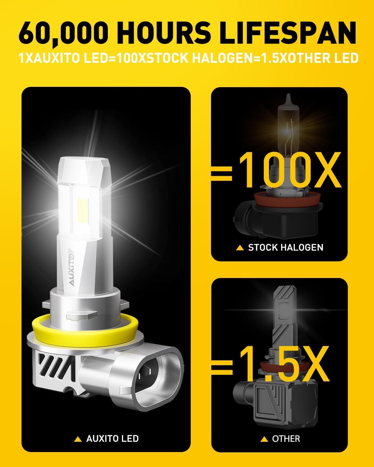 Be the first to review “AUXITO H11 LED Bulbs, 50000LM 900% Super Bright, 60000+ Hours Life Service, 6500K Cool White, 1:1 Mini Size Wireless H8 H9 Fog Light Halogen Replacement, Plug & Play, Pack of 2(9005+H11)”