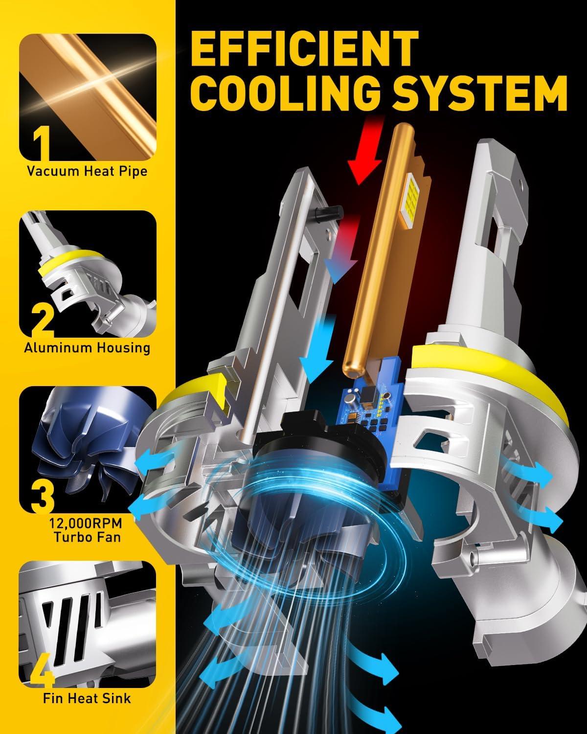 Perfect Fit & Easy Installation: Designed strictly in line with h11 specifications, it perfectly matches the corresponding socket without the need for additional fixture modifications. The installation process is simple and can be completed by hand—no professional tools required, enabling easy lighting upgrades.